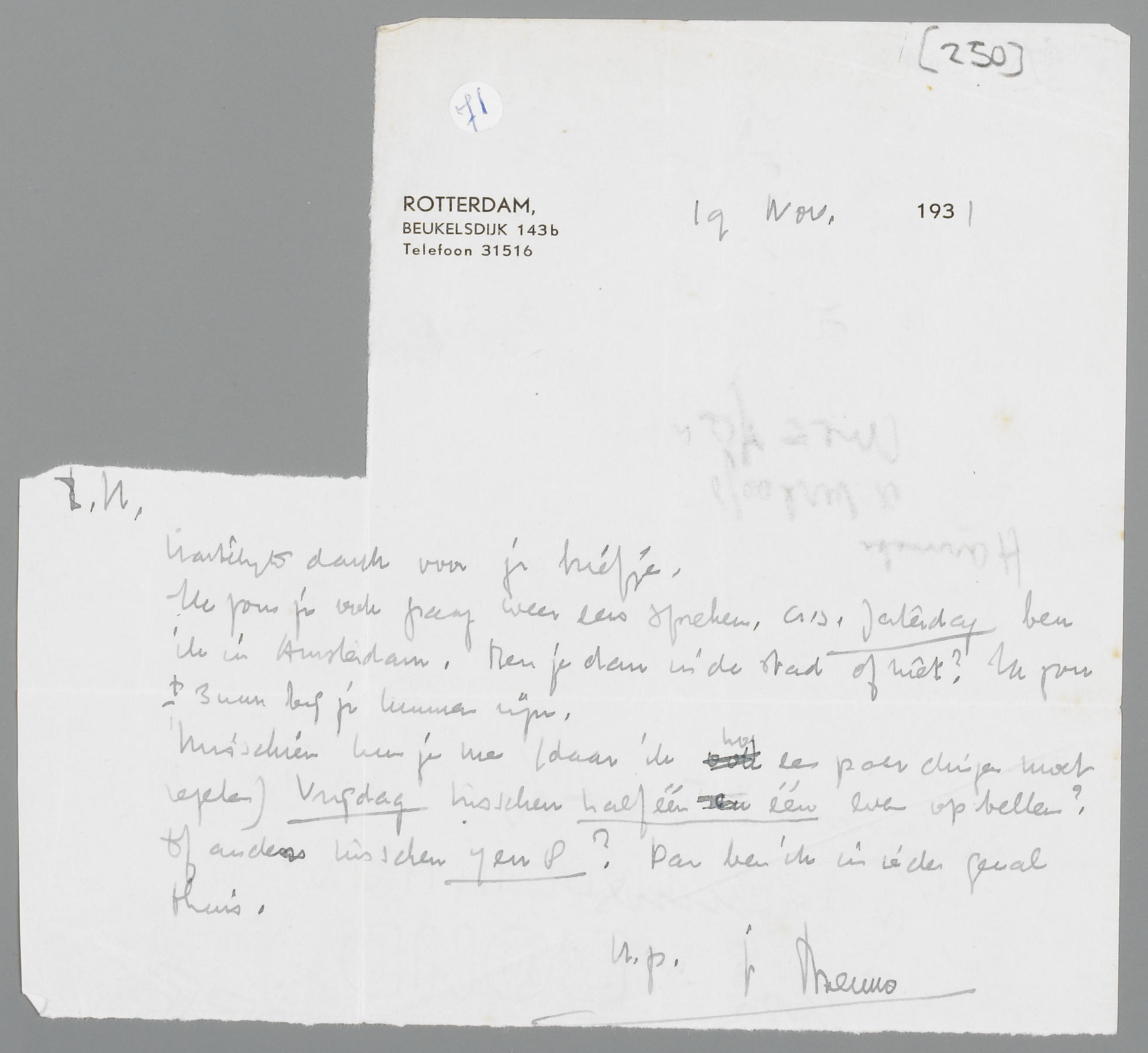 Misschien kun je me (daar ik nog een paar dingen moet regelen) vrijdag tusschen half één en één even opbellen? Of anders tusschen 7 en 8. Dan ben ik ieder geval thuis.