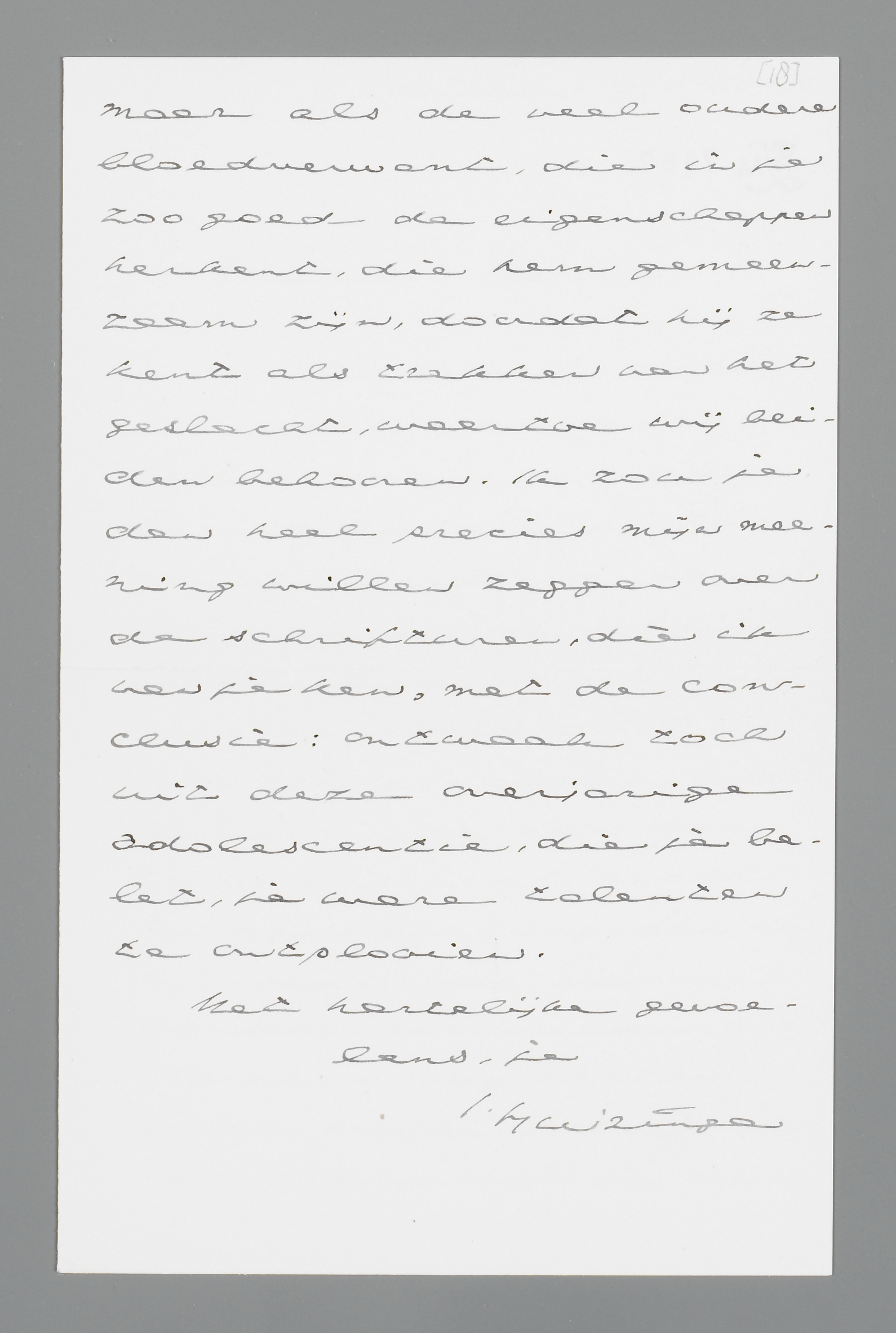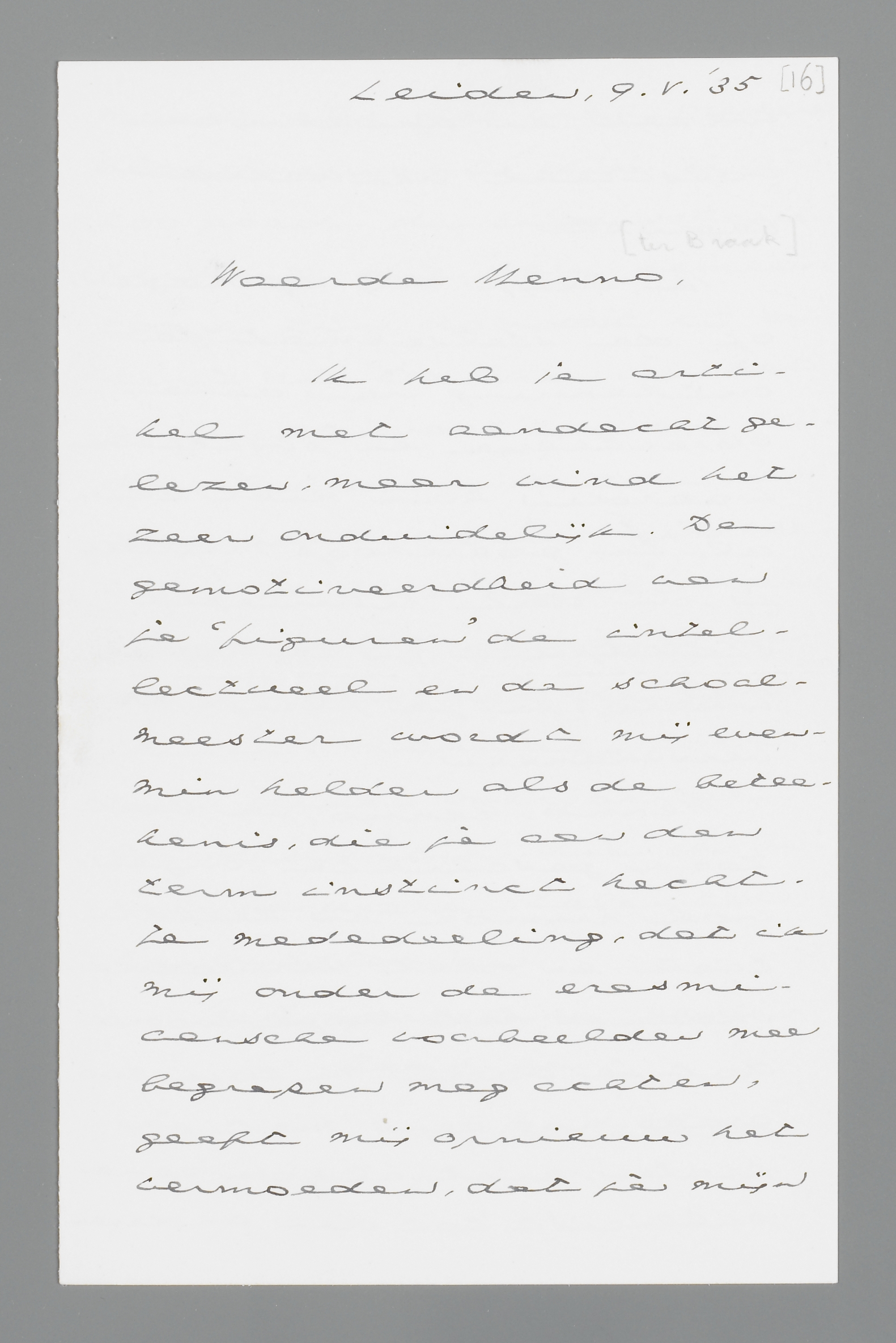 Ik heb je artikel met aandacht gelezen, maar vind het zeer onduidelijk. De gemotiveerdheid van je ‘figuren’ de intellectueel en de schoolmeester wordt mij evenmin helder als de beteekenis, die je aan den term instinct hecht. Je mededeeling, dat ik mij onder de erasmiaansche voorbeelden mee begrepen mag achten, geeft mij opnieuw het vermoeden, dat je mijn wezen en denkwijze volstrekt verkeerd begrijpt.