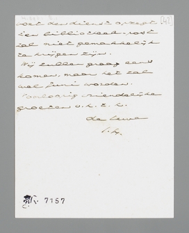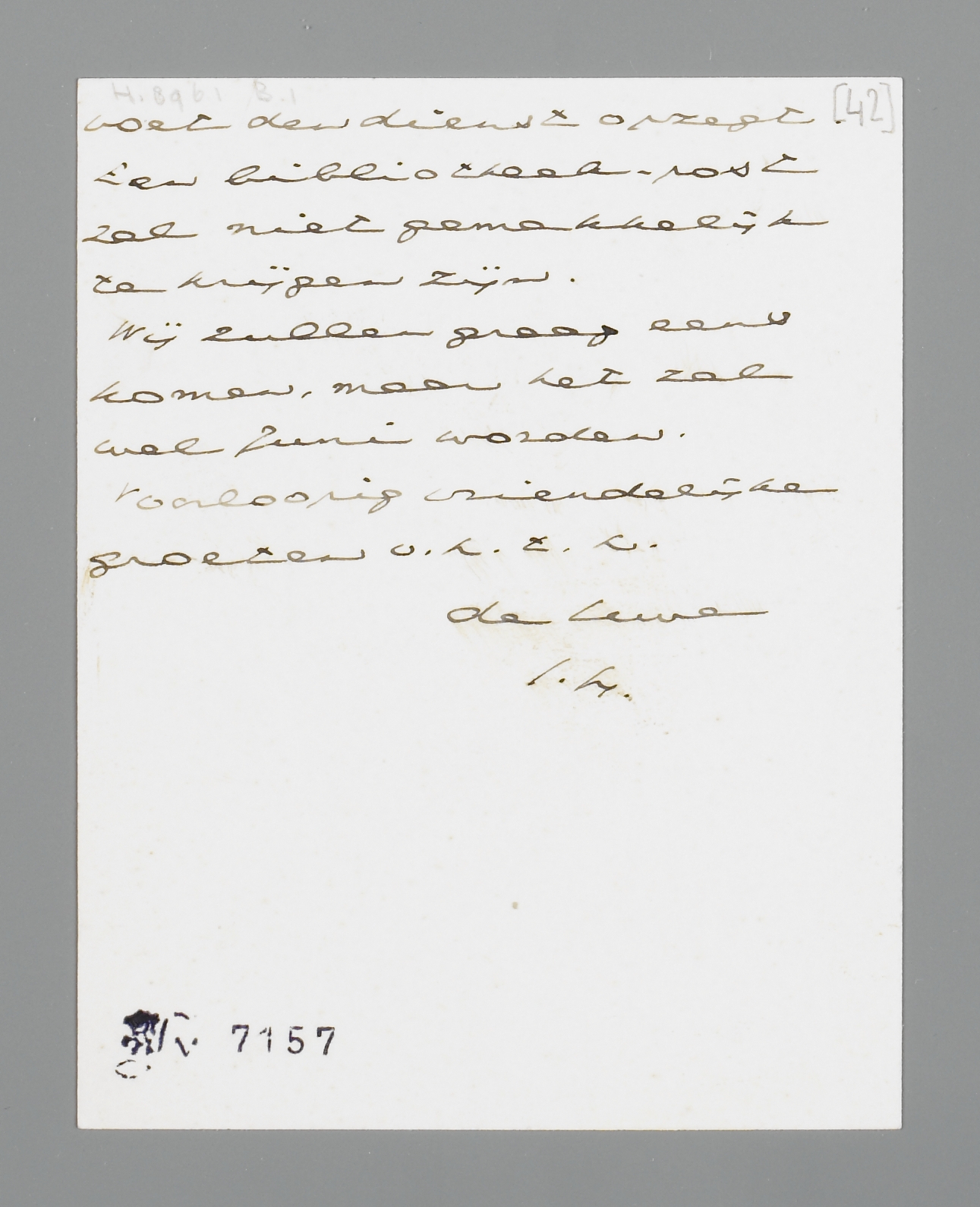 Ik kreeg en beantwoordde reeds heden een vraag om inlichtingen over je van den rector van het Tweede gymnasium in den Haag. Ik heb naar mijn beste weten getracht, je kansen te bevorderen. De proeven van Nijgh's correspondentie, die ik wel van Jakob zag, maken het mij volkomen begrijpelijk, dat iemand hem op staanden voet den dienst opzegt. Een bibliotheek-post zal niet gemakkelijk te krijgen zijn.