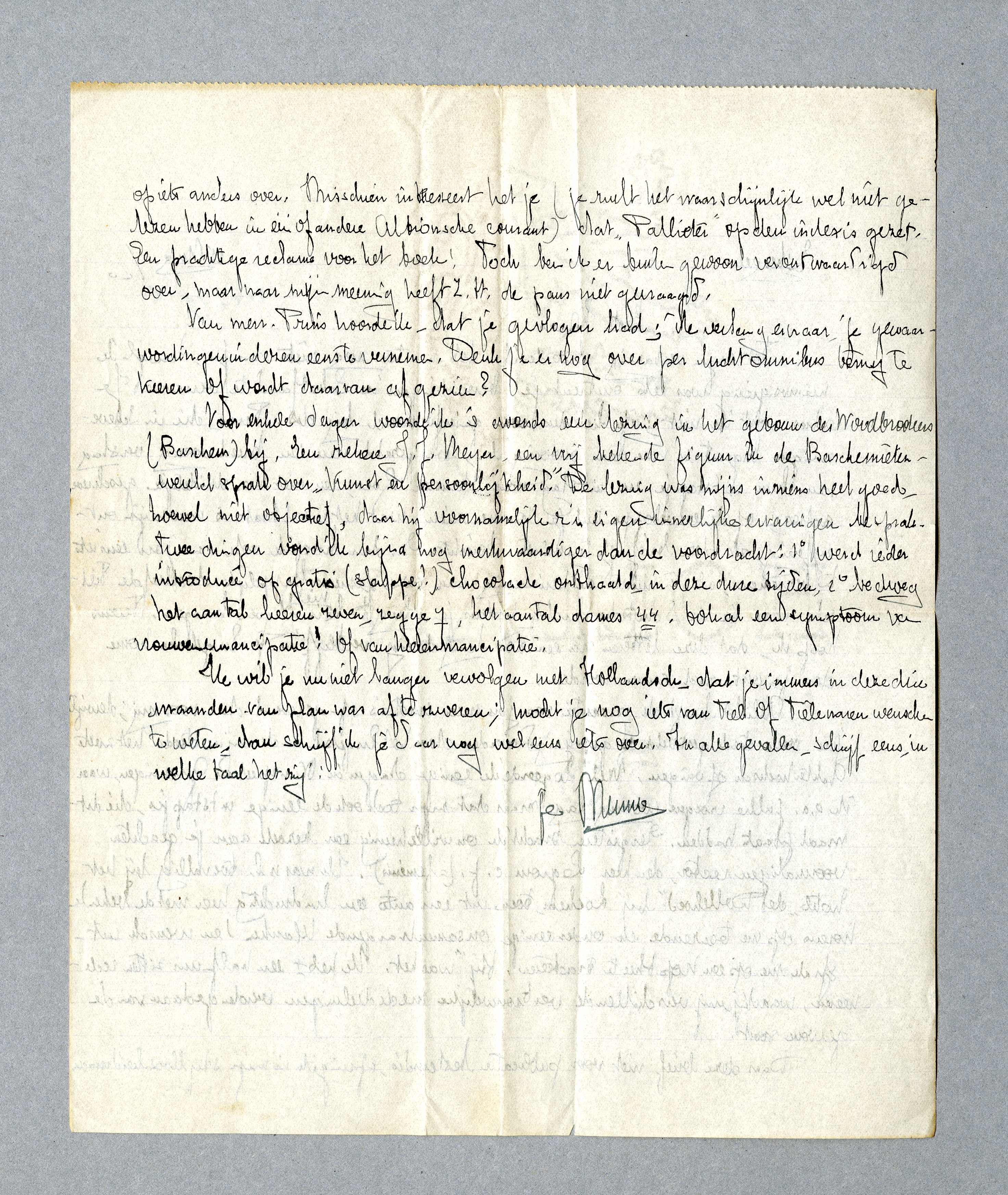 Daar deze brief niet voor publicatie bestemd is, spring ik in mijn stijlloosheid maar op iets anders over. Misschien interesseert het je (je zult het waarschijnlijk wel niet gelezen hebben in één of andere Albionsche courant) dat ‘Pallieter’ op den index is gezet. Een prachtige reclame voor het boek! Toch ben ik er buitengewoon verontwaardigd over, maar naar mijn meening heeft Z.H. de paus niet gevraagd.