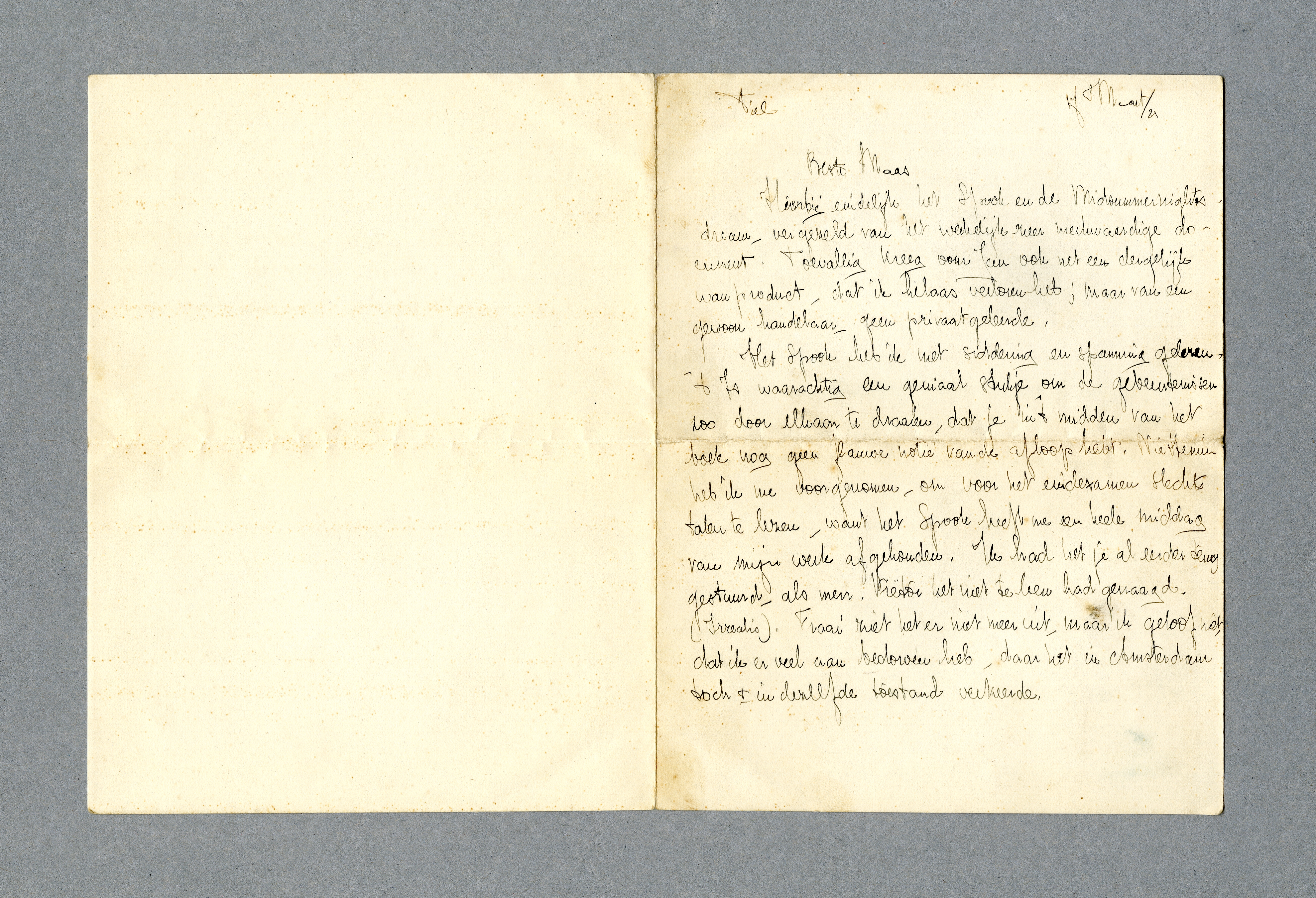 Er komen nu telkens fragmentjes van de Midsummernightsdream muziek bij me opdoemen, waaronder de piano dan lijden moet. Toch is het zeer amusant, vooral omdat het de herinnering opwekt aan eenige heerlijke zorgelooze en eindexamengedachtenlooze dagen.