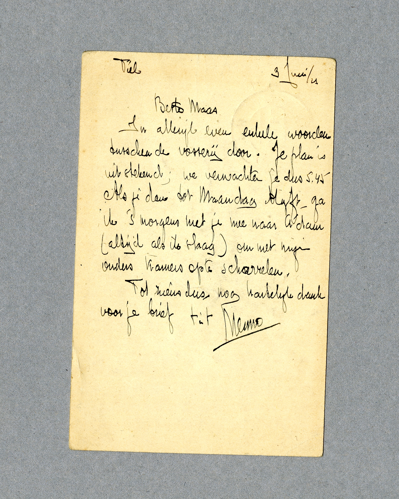 Tot ziens dus, nog hartelijk dank voor je brief