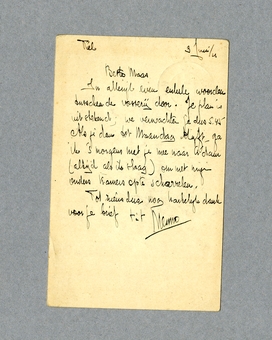 In allerijl even enkele woorden tusschen de vosserij door. Je plan is uitstekend; we verwachten je dus 5.45. Als je dan tot Maandag blijft, ga ik 's morgens met je mee naar A'dam (altijd als ik slaag) om met mijn ouders kamers op te scharrelen.