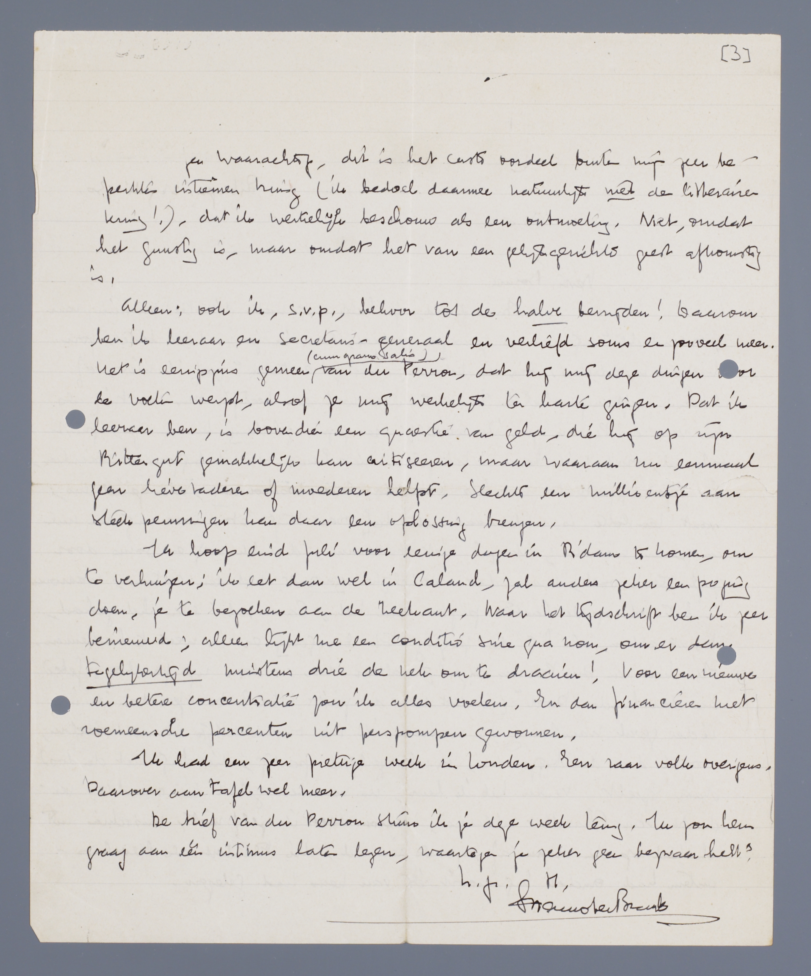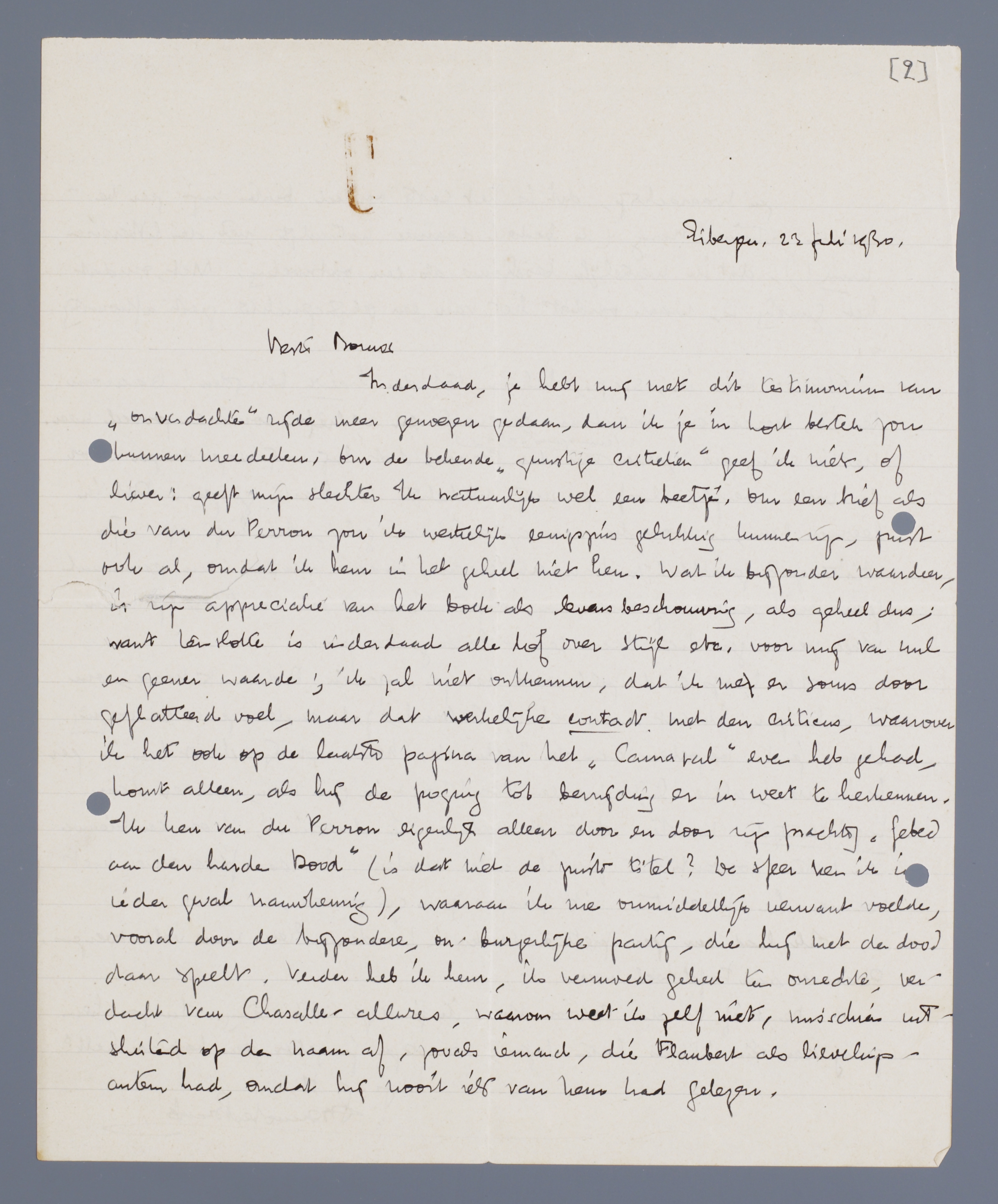 De brief van du Perron stuur ik je deze week terug. Ik zou hem graag aan één intimus laten lezen, waartegen je zeker geen bezwaar hebt?