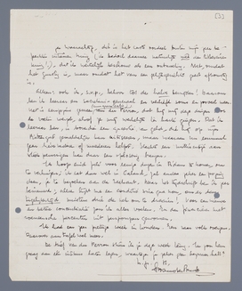 Alleen: ook ik, s.v.p., behoor tot de halve bevrijden! Daarom ben ik leeraar en secretaris-generaal en verliefd soms en zooveel meer. Het is eenigszins gemeen (cum grano salis) van du Perron, dat hij mij deze dingen voor de voeten werpt, alsof ze mij werkelijk ter harte gingen. Dat ik leeraar ben, is bovendien een quaestie van geld, die hij op zijn Rittergut gemakkelijk kan critiseeren, maar waaraan nu eenmaal geen lieve vaderen of moederen helpt. Slechts een millioentje aan steekpenningen kan daar een oplossing brengen.