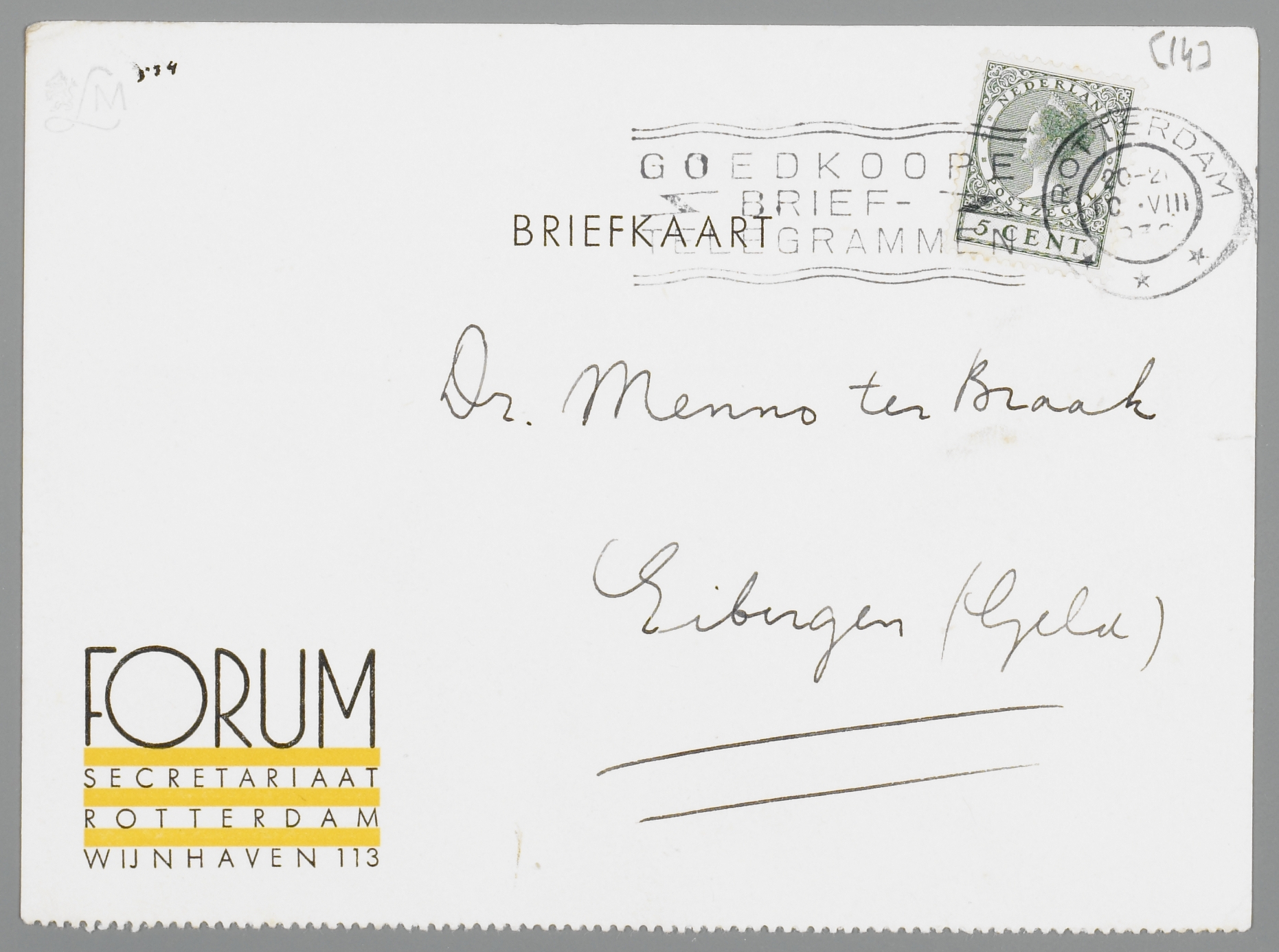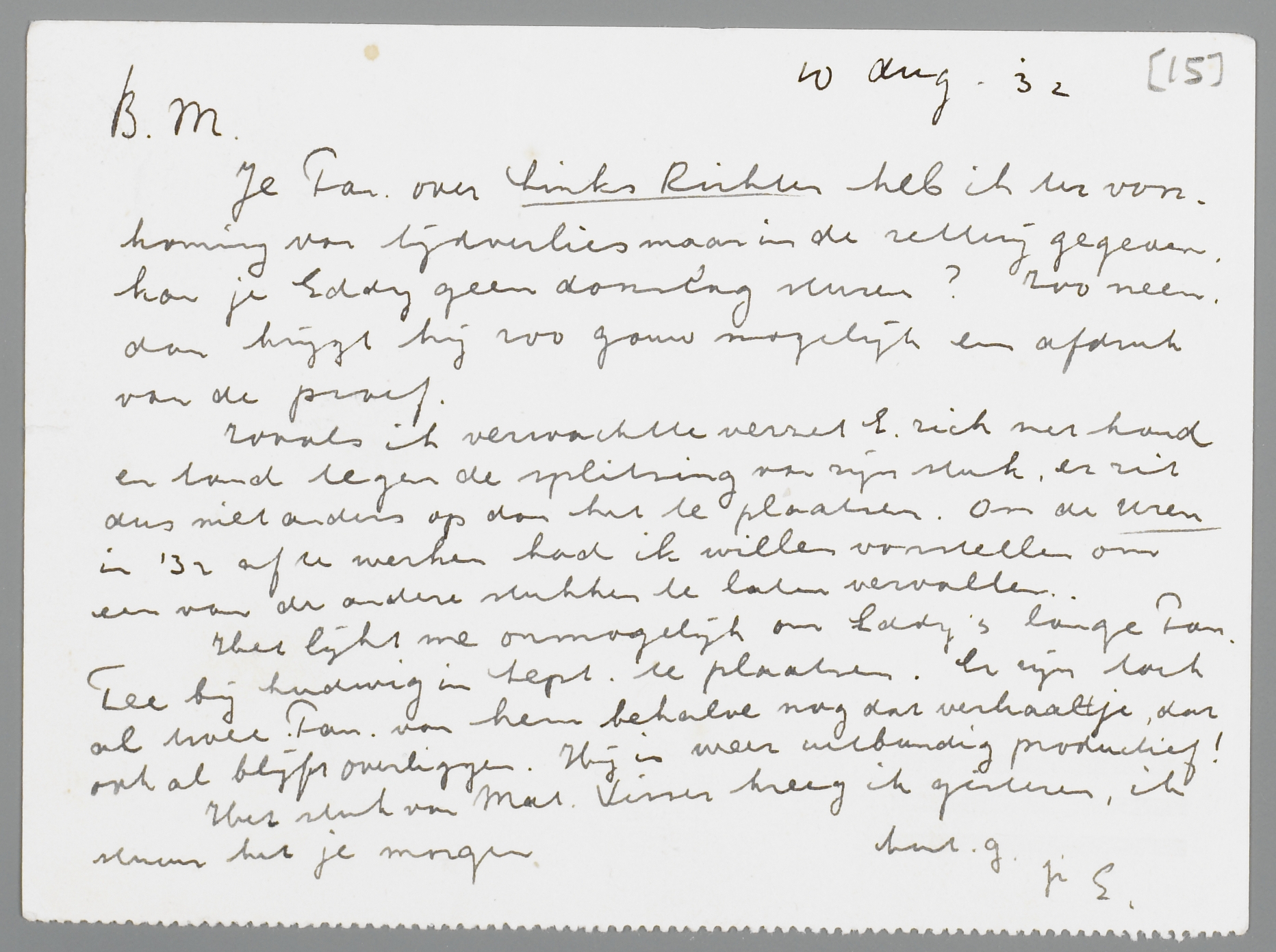Je Pan. over Links Richten heb ik ter voorkoming van tijdverlies maar in de zetting gegeven, kan je Eddy geen doorslag sturen? Zoo neen, dan krijgt hij zoo gauw mogelijk een afdruk van de proef.
