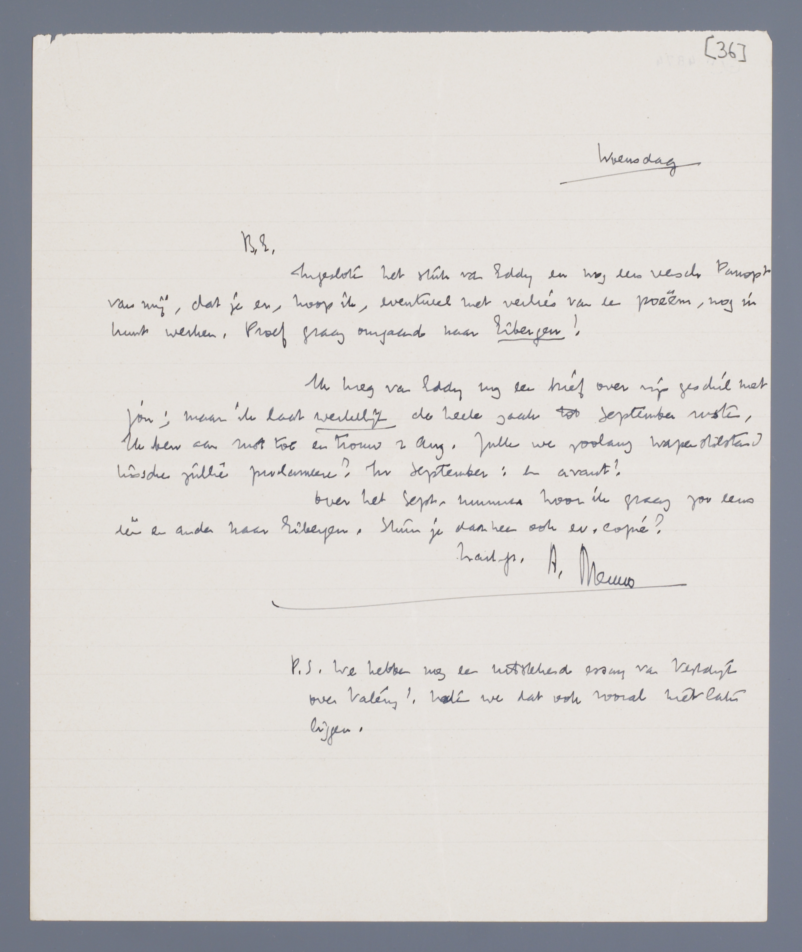 P.S. We hebben nog een uitstekend essay van Vestdijk over Valéry! [Laten] we dat ook vooral niet laten liggen.