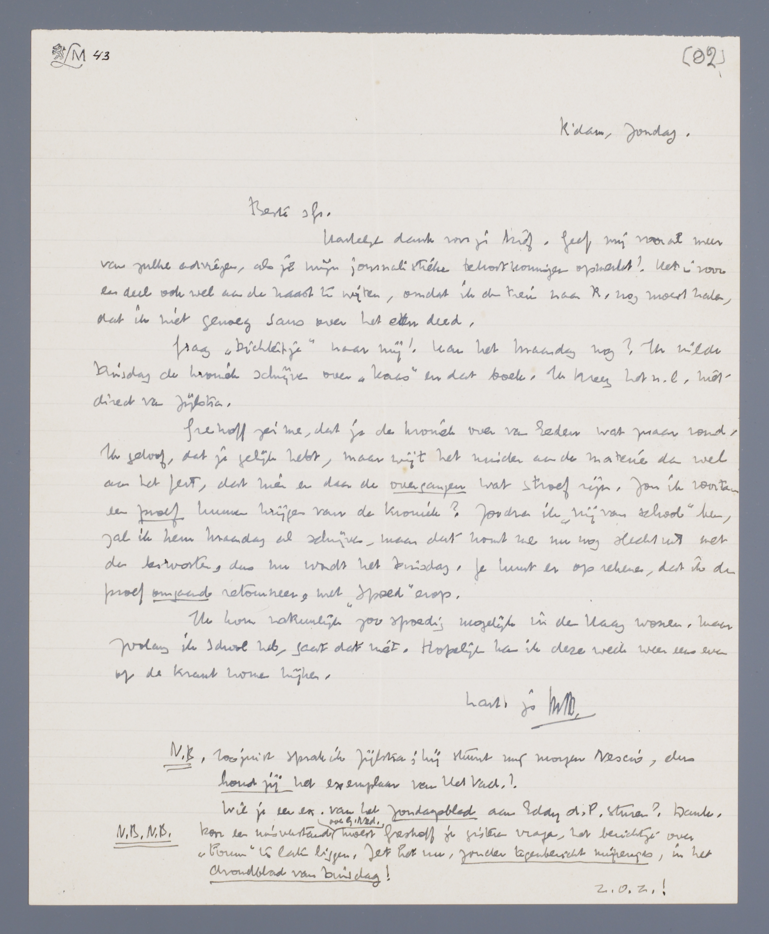 N.B.N.B. Door een misverstand over Gr. Ned. moest Greshoff je gisteren vragen, het berichtje over ‘Forum’ te laten liggen. Zet het nu, zonder tegenbericht mijnerzijds, in het Avondblad van dinsdag!