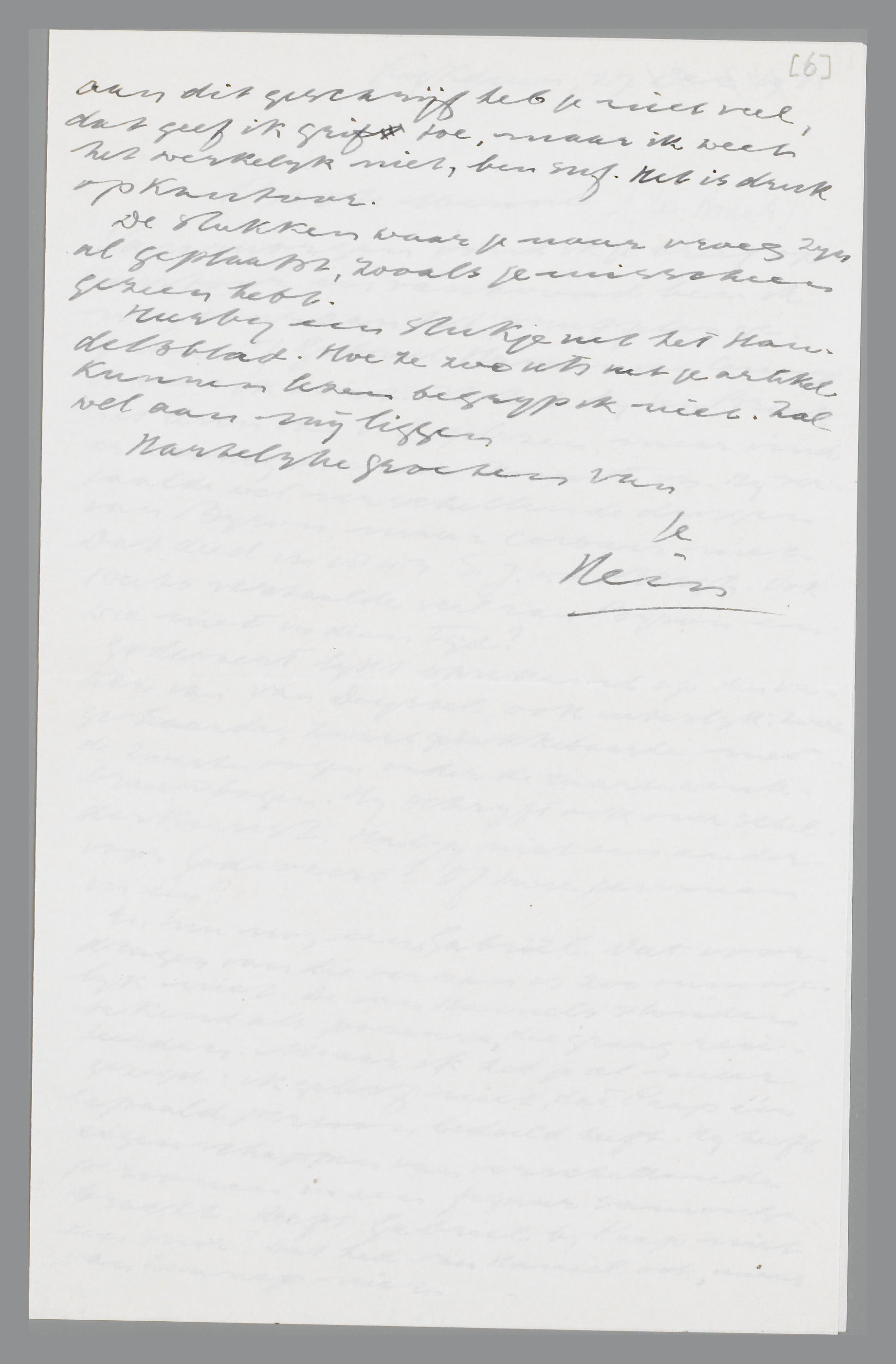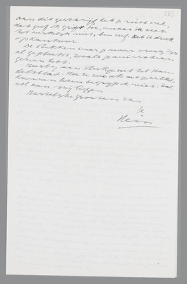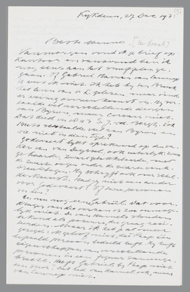 En, nu nog eens Gabriël. Dat voordragen van die verzen is zoo onmogelijk niet. De van Hamels stonden bekend als poseurs, die graag reciteerden. Maar ik heb je al meer gezegd: ik geloof niet, dat Paap één bepaald persoon bedoeld heeft. Hij heeft eigenschappen van verschillende personen in een figuur samengebracht. Heeft Gabriël bij Paap niet een snor? Dat had van Hamel ook, maar van Lennep niet. Aan dit geschrijf heb je niet veel, dat geef ik grif toe, maar ik weet het werkelijk niet, ben suf. Het is druk op Kantoor.