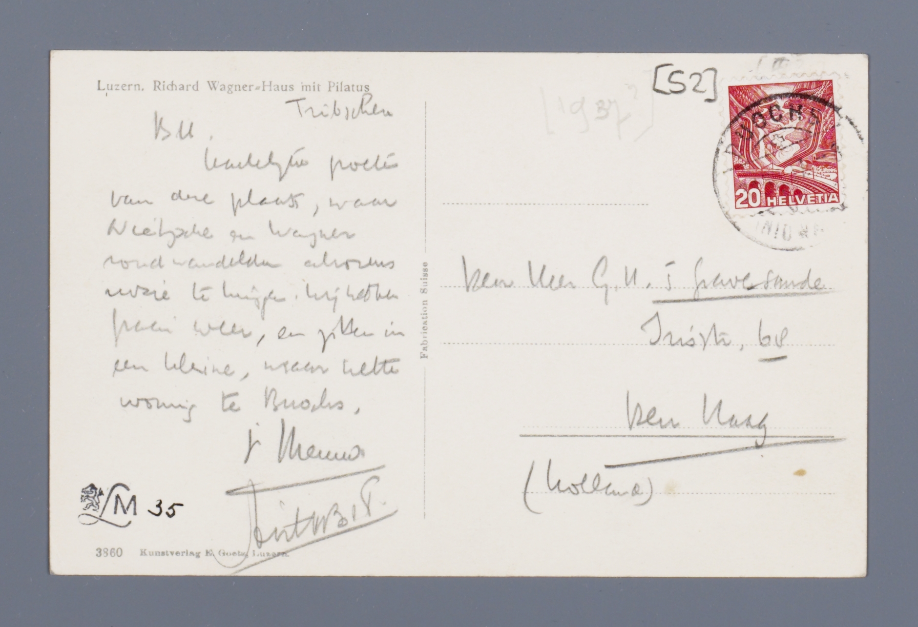 Hartelijke groeten van deze plaats, waar Nietzsche en Wagner rondwandelden alvorens ruzie te krijgen. Wij hebben fraai weer, en zitten in een kleine, maar nette woning te Buochs.