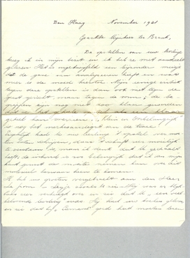 [VAN DEZE BRIEF IS ALLEEN HET ONTWERP BEWAARD GEBLEVEN. HET IS NIET ZEKER OF DE BRIEF VERSTUURD IS. VAN DE KLADVERSIE WORDEN HIERNAAST DE AFBEELDINGEN GETOOND. VAN DE EERSTE VIER KLADBLADZIJDEN IS ONDERSTAANDE TRANSCRIPTIE GEMAAKT.]