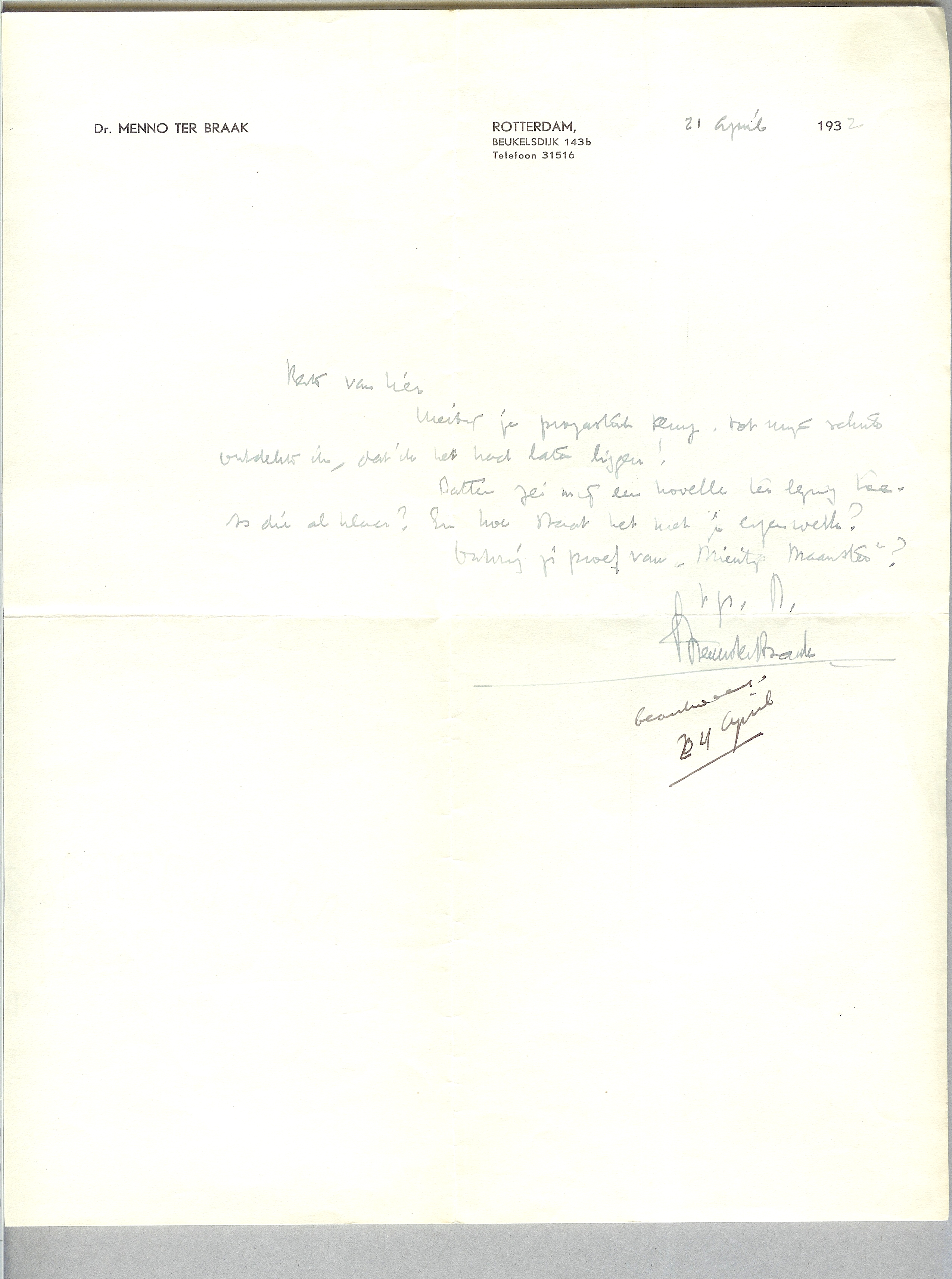 Batten zei mij een novelle ter lezing toe. Is die al klaar? En hoe staat het met je eigen werk?