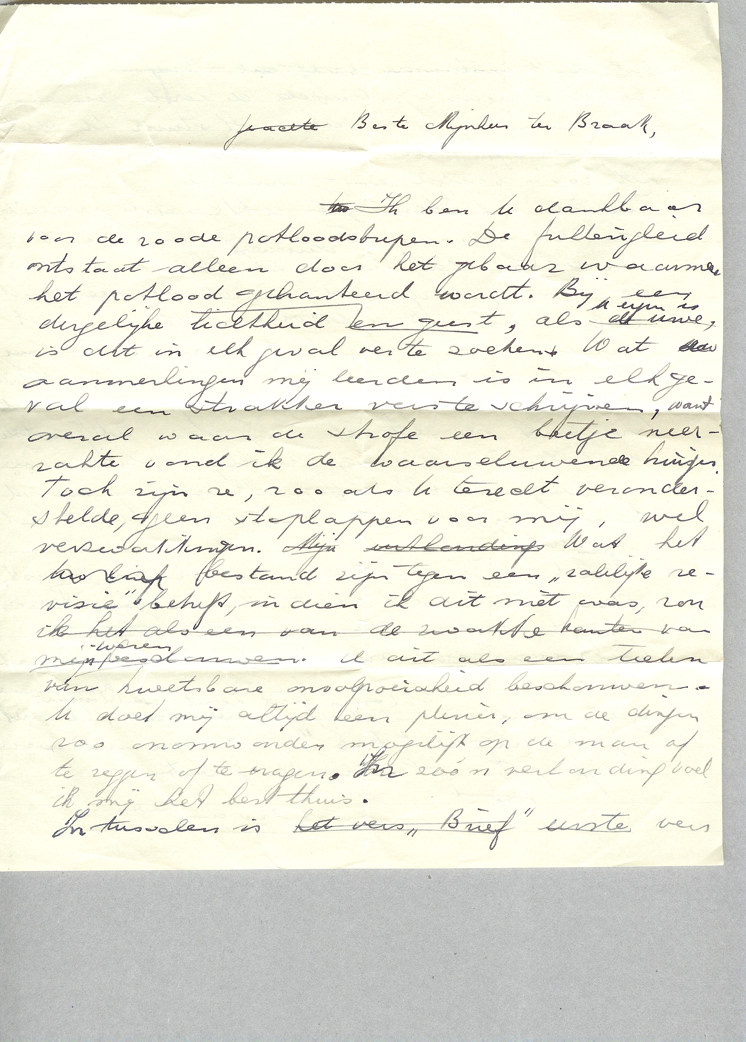 [VAN DEZE BRIEF IS ALLEEN HET ONTWERP BEWAARD GEBLEVEN. HET IS NIET ZEKER OF DE BRIEF VERSTUURD IS. VAN DE KLADVERSIE WORDEN HIERNAAST DE AFBEELDINGEN GETOOND.]