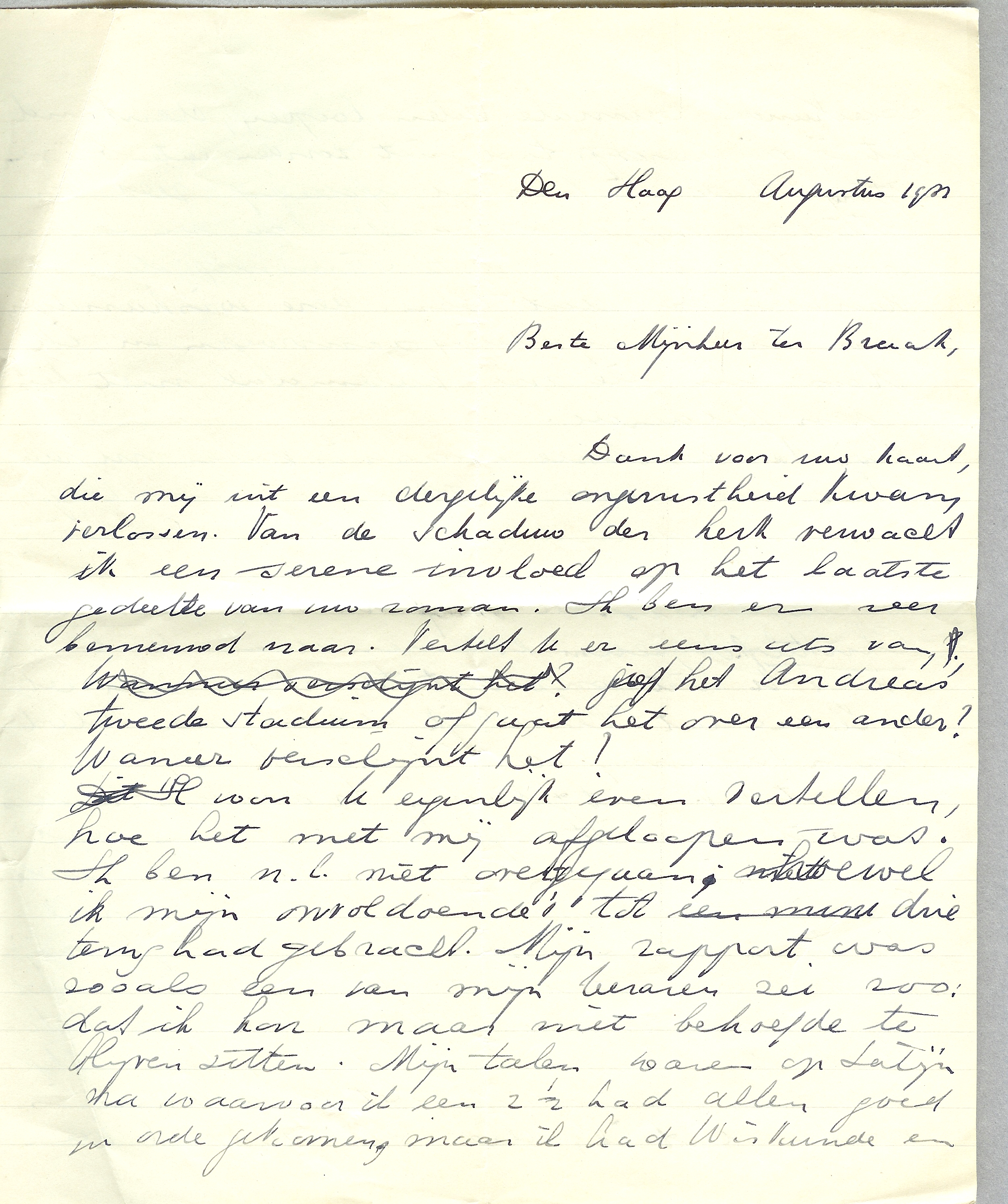 [VAN DEZE BRIEF IS ALLEEN HET ONTWERP BEWAARD GEBLEVEN. HET IS NIET ZEKER OF DE BRIEF VERSTUURD IS. VAN DE KLADVERSIE WORDEN HIERNAAST DE AFBEELDINGEN GETOOND.]