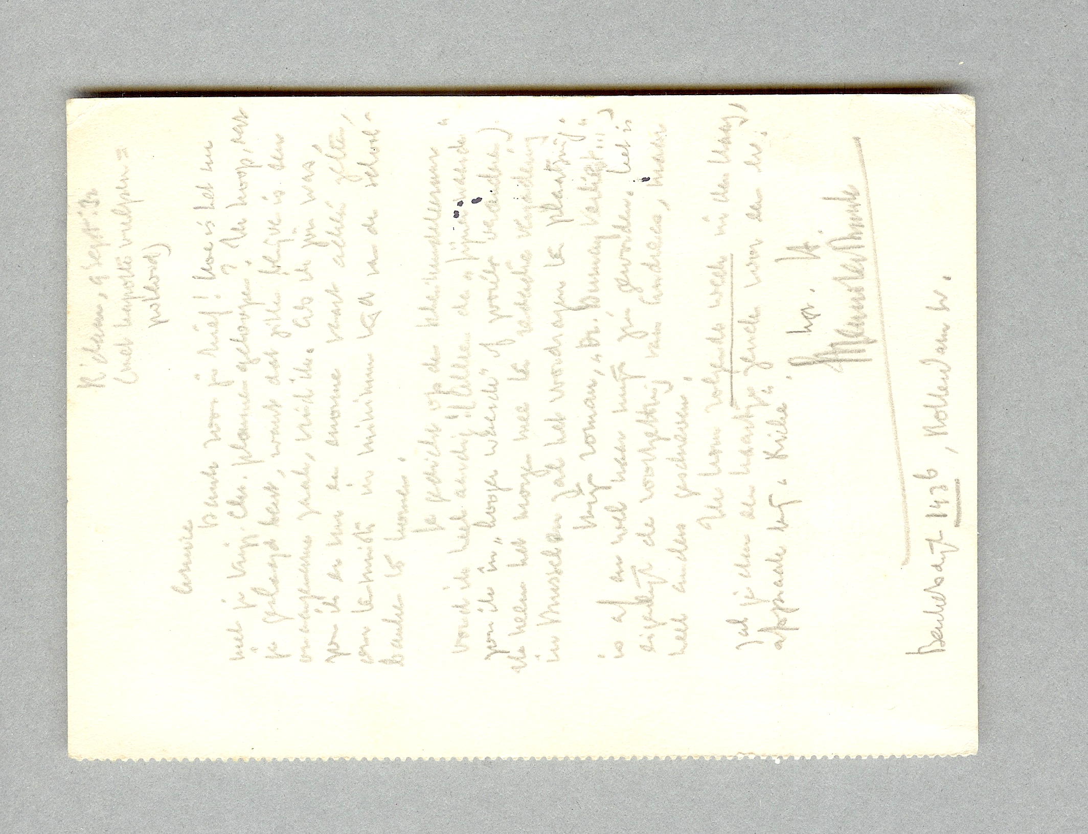 Ik kom volgende week in Den Haag, zal je dan een kaartje zenden voor een ev. afspraak bij ‘Riche’.