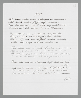 Ik stuur U hierbij een vers. Ik zal Mijnheer Du Perron een rijmbrief terugschrijven zoodra als ik tijd heb. U hebt U zeker kostelijk geamuseerd in Parijs?!