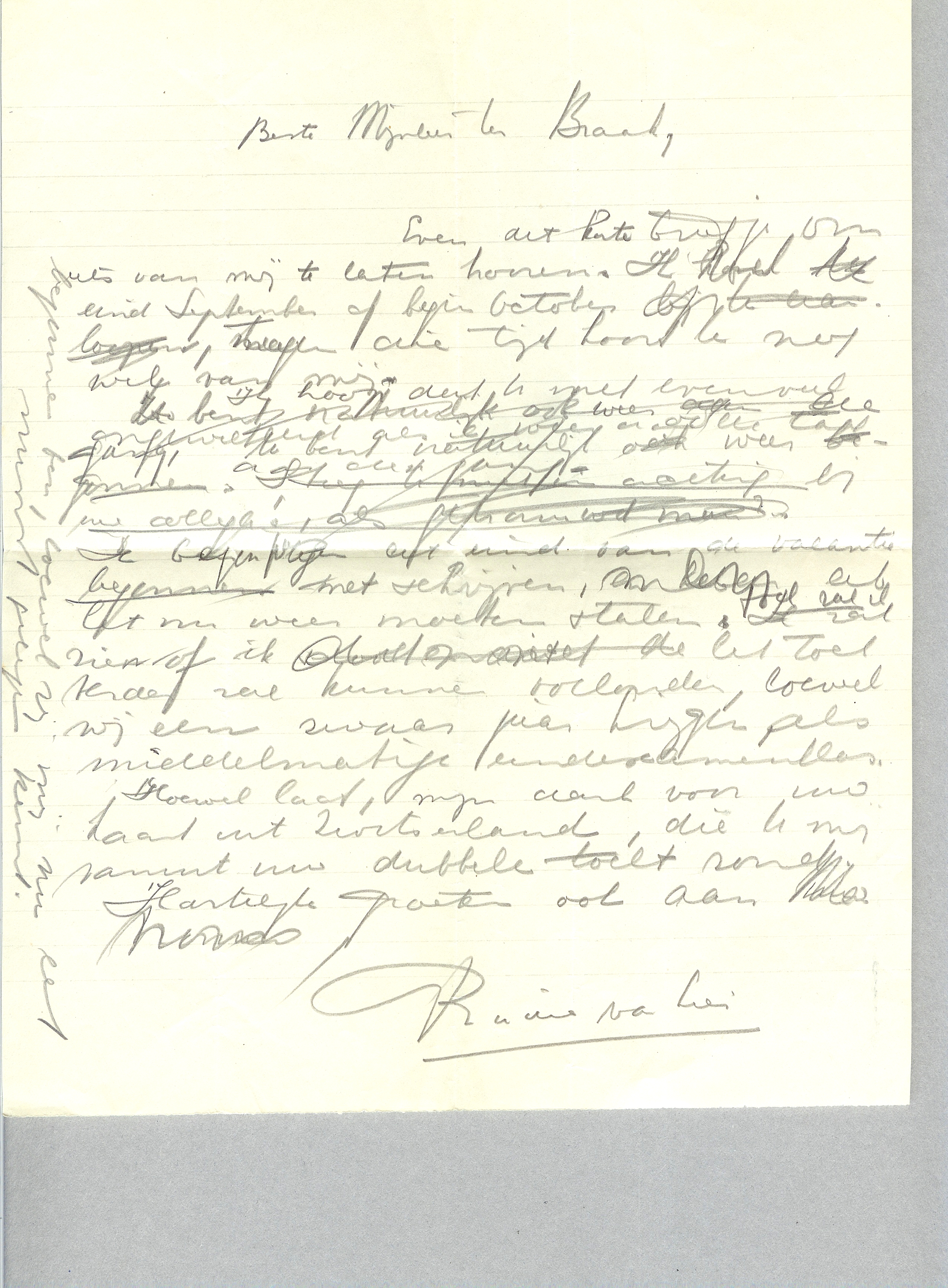 [VAN DEZE BRIEF IS ALLEEN HET ONTWERP BEWAARD GEBLEVEN. HET IS NIET ZEKER OF DE BRIEF VERSTUURD IS. VAN DE KLADVERSIE WORDEN HIERNAAST DE AFBEELDINGEN GETOOND.]