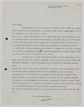 Terloops deel ik u mede, dat Willem Elsschot de laatste hand legt aan een nieuw boek. Hij heeft het aan Forum aangeboden en wij hebben reeds op een redactievergadering te Antwerpen de afspraak gemaakt om met de publicatie te beginnen omstreeks Maart.