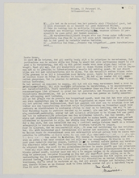 Om het amicaal en speelsch te zeggen, zij het ook als veeg verzoener: hoed u voor de princiepenrijderij. Gij zijt bezig u in princiepen te verstrikken, u te empanacheeren met karaktervastheid, fiere onkreukbaarheid tegenover Rome en Pius XI en alle verdere romanceeringen (dat allemaal op grond van het gevalletje met Virginia) op zulke calvinistische dweperswijze, dat ge u weldra op uren van een gewone en rustig menschelijke uitlegging zult bevinden.