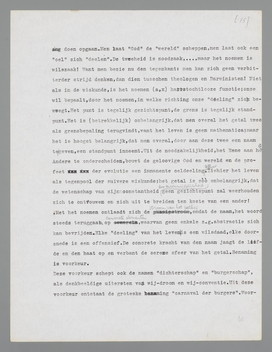 ren’, die men met name moet noemen. Het gaat hier niet om een wiskundig probleem, waartegenover men zich willoos verhoudt; ware het leven wiskunde, dan zou men het nooit volledig noembaar contrast door teekens kunnen uitdrukken, waaraan alle hartstocht vreemd is. Aan a en b kleeft geen passie; maar a en b behelzen dan ook niets van het leven. Wie echter het leven ‘in factoren ontbindt’, is zich bewust, een zonde tegen het leven te begaan. Hij is zich er van bewust, dat hij de ‘factoren’ niet aanwijst, maar schept. De onderscheiding is een schepping, die de schepping Gods geweld aandoet. Dit beseft men, wanneer men be-noemt, etiquetteert, fixeert. Dit beseft men in zijn vollen omvang, wanneer men nadert tot de benoeming van het ‘leven’ en zijn ‘polariteit’. De ruimtelijke onvolledigheid, de tijdelijke toevalligheid zélfs van deze uitgeloogde termen is zoo openbaar, dat men ze moet willen, om ze te kùnnen gebruiken!