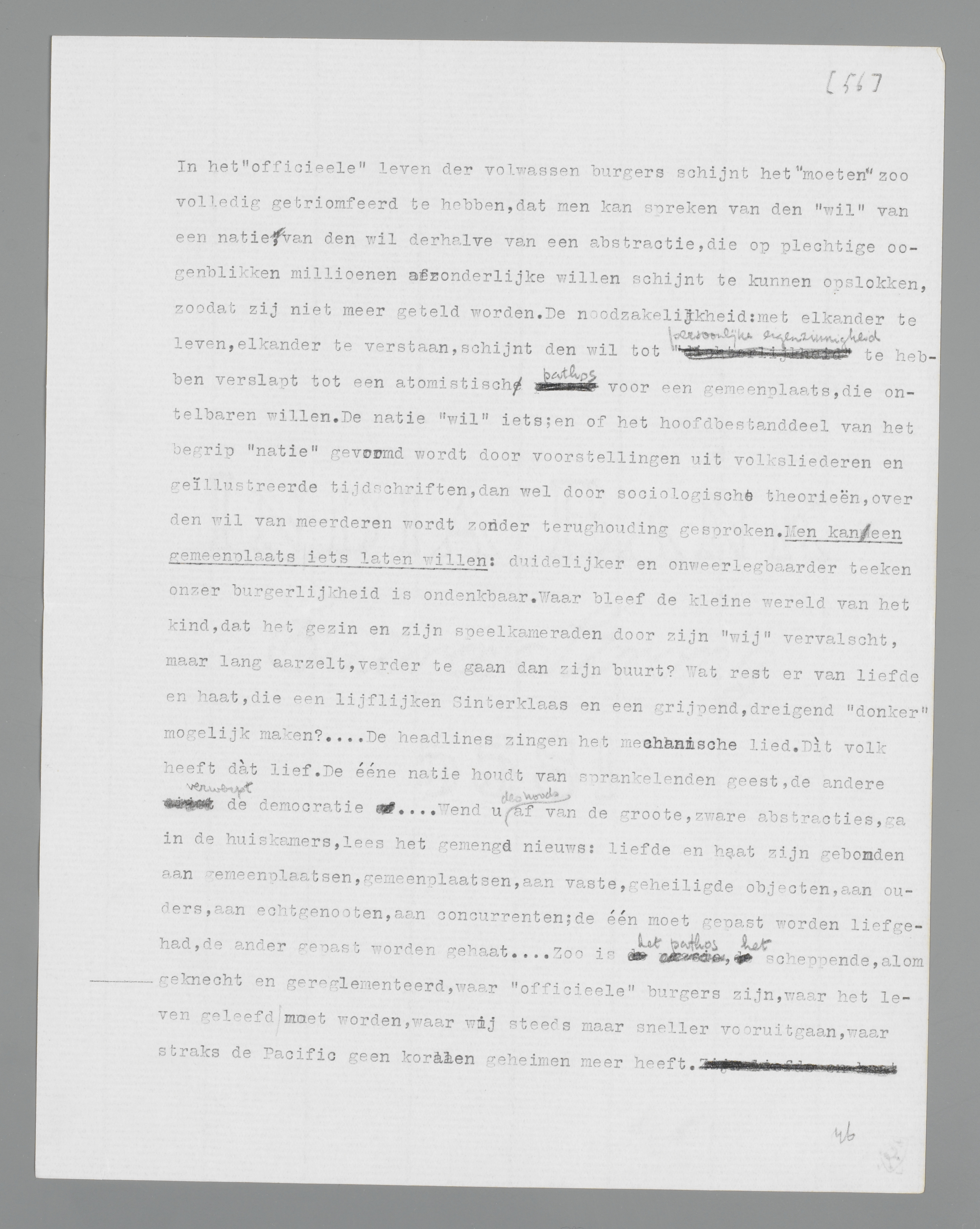 De burger wil het atoom. Hij wil, dat de richting van zijn pathos ook die is van den ander. Hij wil bij het pathos van dien ander geregeld