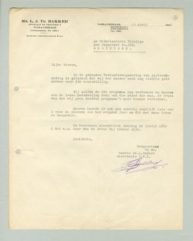 Gaarne hoorde ik ook zoo spoedig mogelijk iets van U voor de plannen van het volgend jaar om dit met onze leden te bespreken.