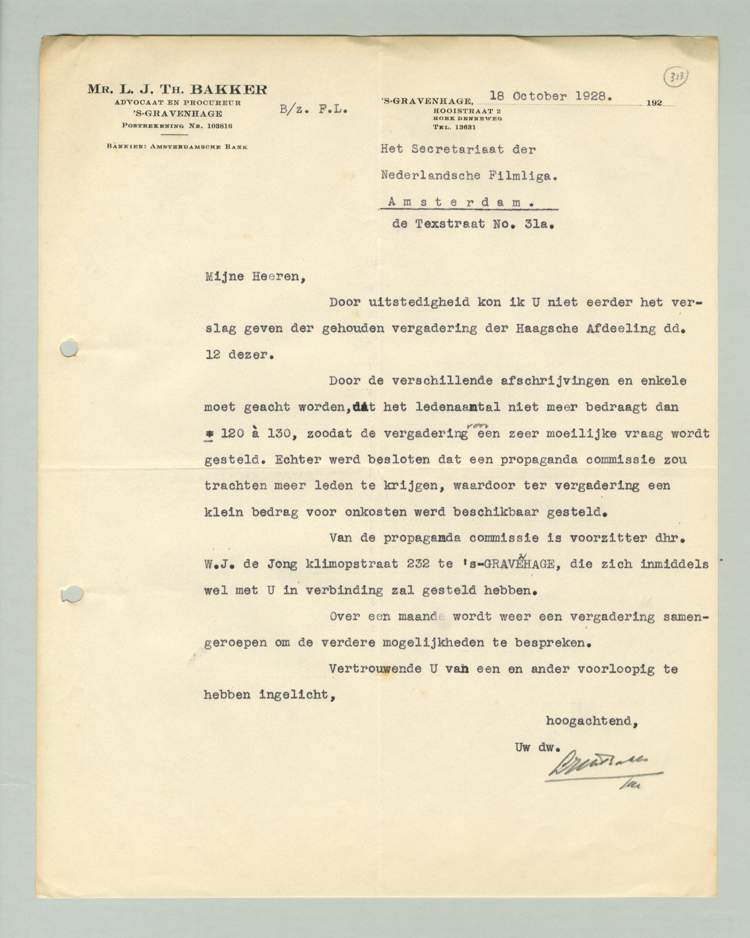 Van de propaganda commissie is voorzitter dhr. W.J. de Jong Klimopstraat 232 te 's-Gravenhage, die zich inmiddels wel met U in verbinding zal gesteld hebben.