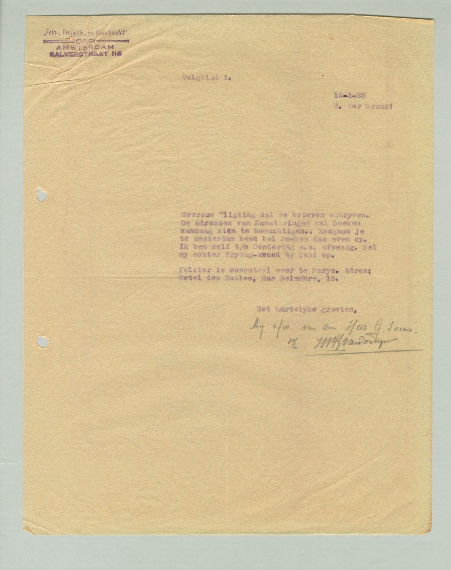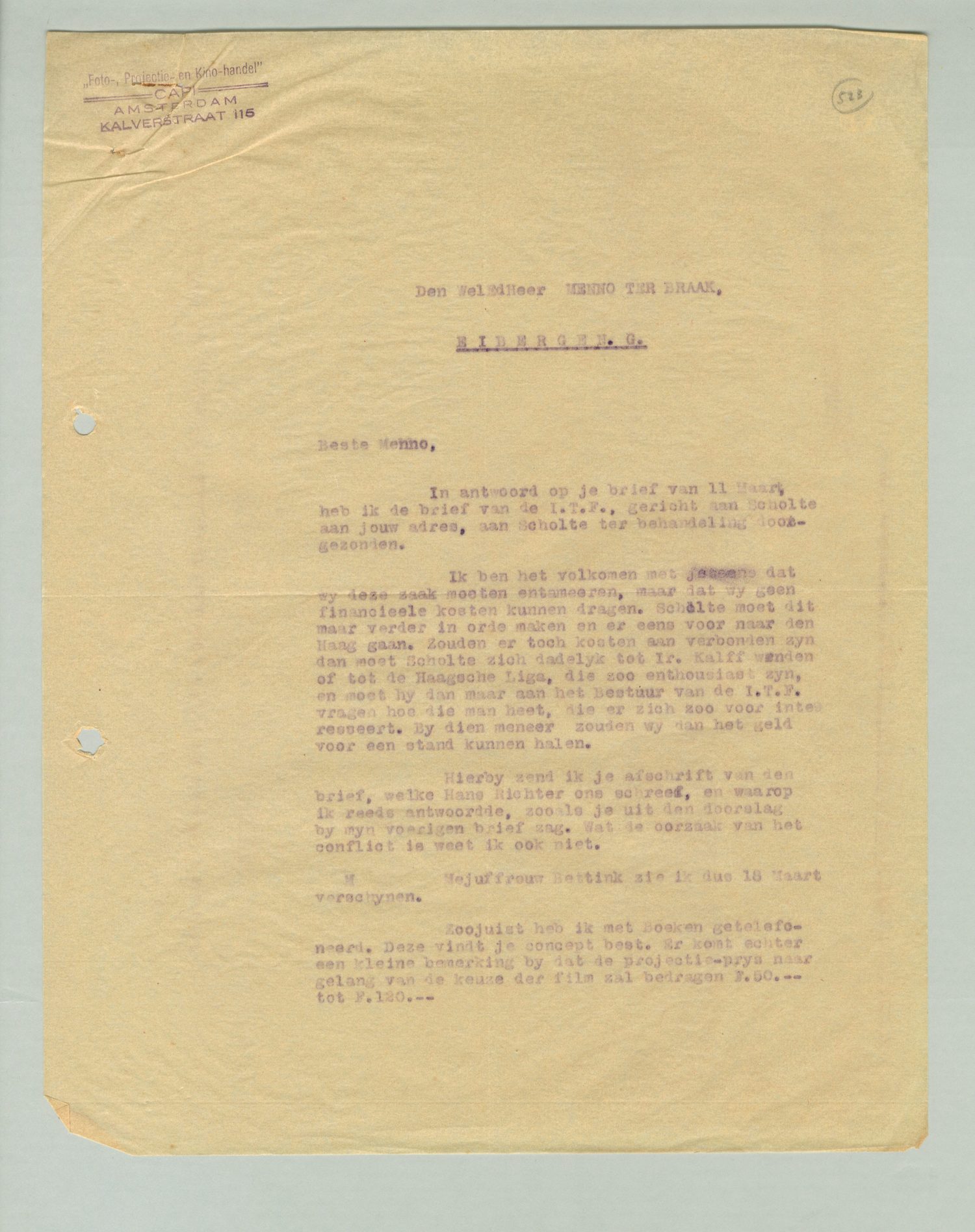 Briefwisseling Menno ter Braak - Capi (Foto-, Projectie- en Kino-handel Capi)