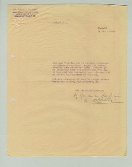 In antwoord op je brief van 11 Maart, heb ik de brief van de I.T.F., gericht aan Scholte aan jouw adres, aan Scholte ter behandeling doorgezonden.