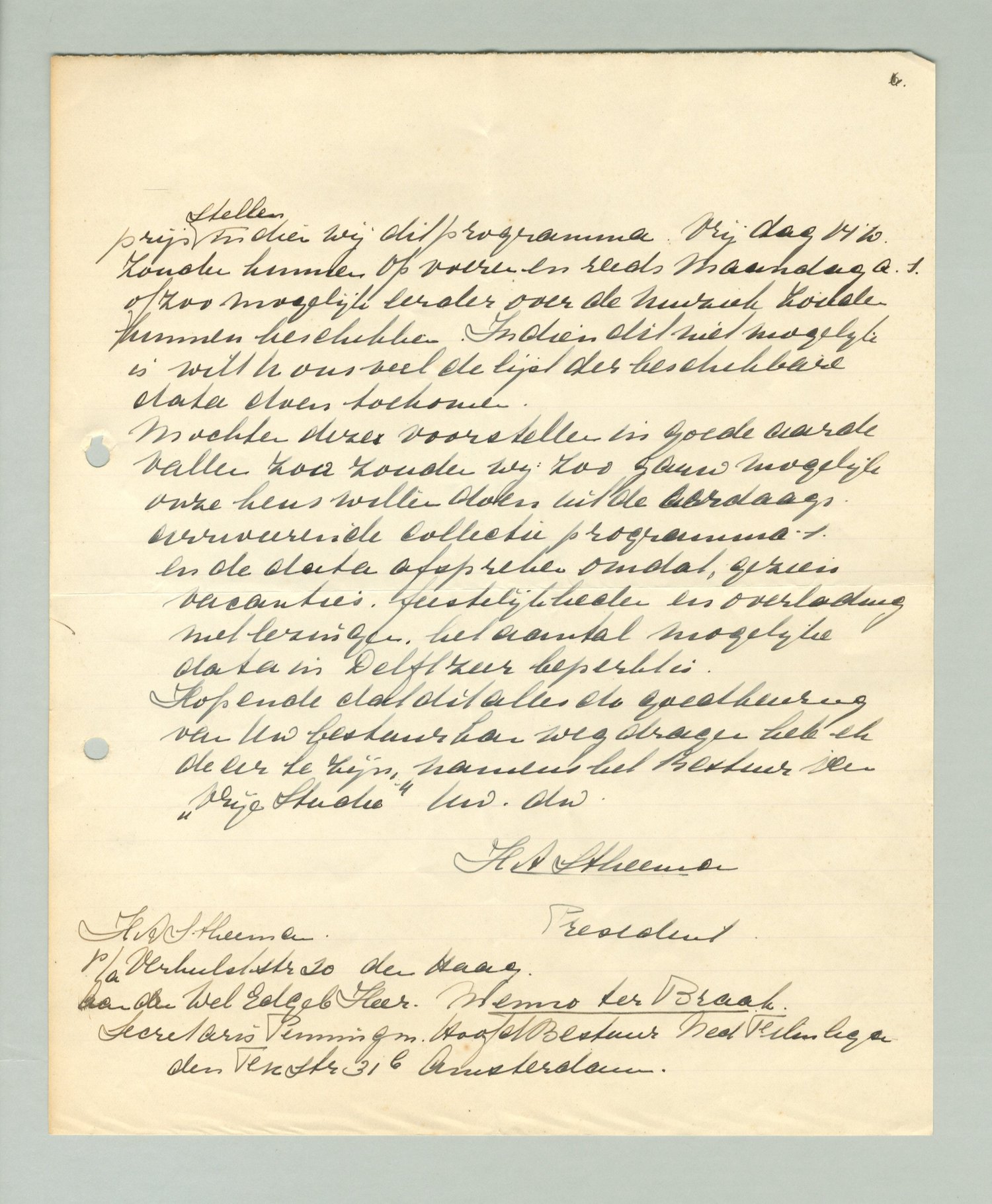 Hopende dat dit alles de goedkeuring van Uw bestuur kan wegdragen heb ik de eer te zjjn, namens het Bestuur van ‘Vrije Studie’