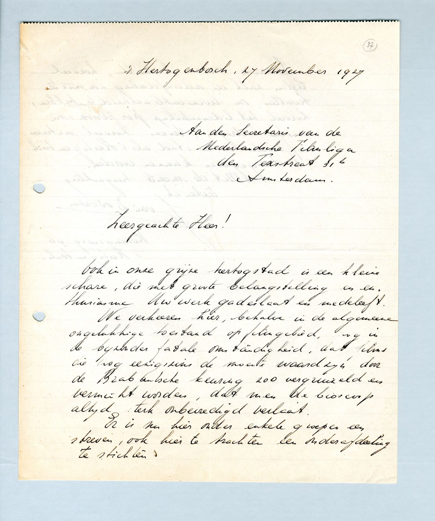 Ook in onze grijze hertogstad is een kleine schare, die met groote belangstelling en enthusiasme Uw werk gadeslaat en medeleeft.