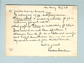 Jammer, dat het hier zoo slecht gaat met de Liga. Het Bestuur heeft al het mogelijke gedaan, zelfs pers. geldoffers gebracht. Er [onleesbaar] hier echter weinig [onleesbaar] ten gunste. Als ik in A'dam kom ben ik van plan er over te komen spreken.