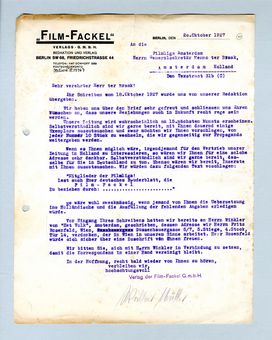 Ihr Schreiben vom 18. Oktober 1927 wurde uns von unserer Redaktion übergeben.