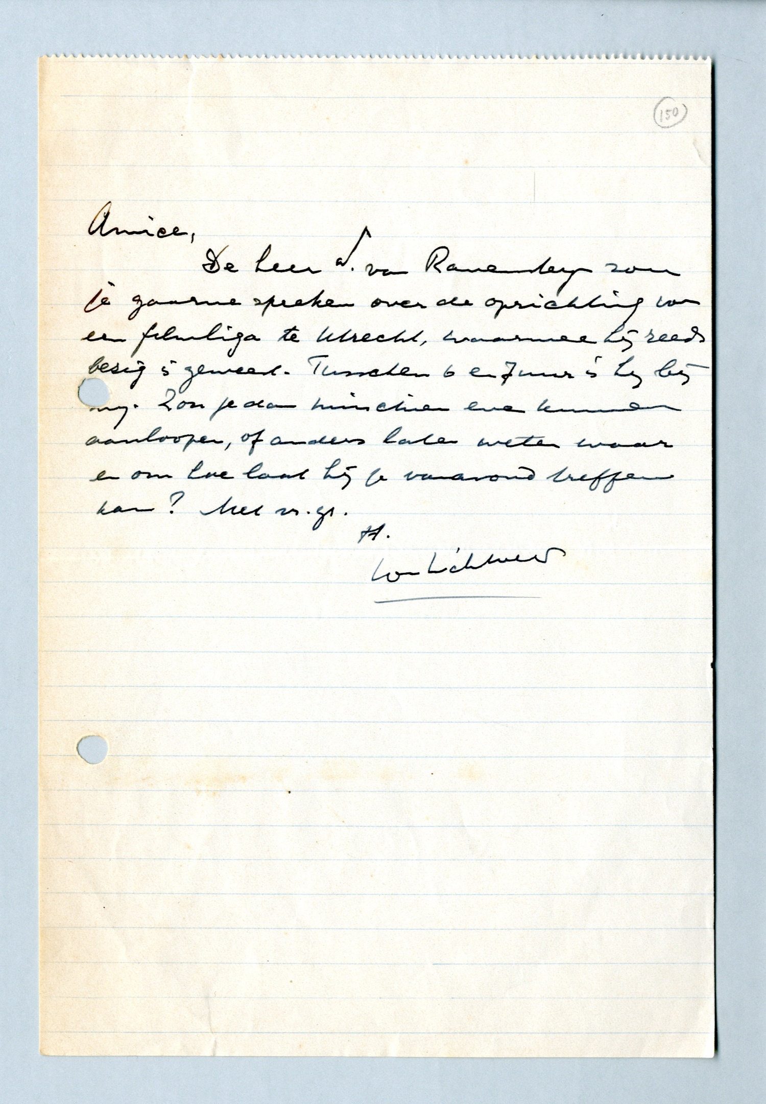 De heer S. van Ravesteyn zou je gaarne spreken over de oprichting van een filmliga te Utrecht, waarmee hij reeds bezig is geweest. Tusschen 6 en 7 uur is hij bij mij. Zou je dan misschien even kunnen aanloopen, of anders laten weten waar en om hoe laat hij je vanavond treffen kan?