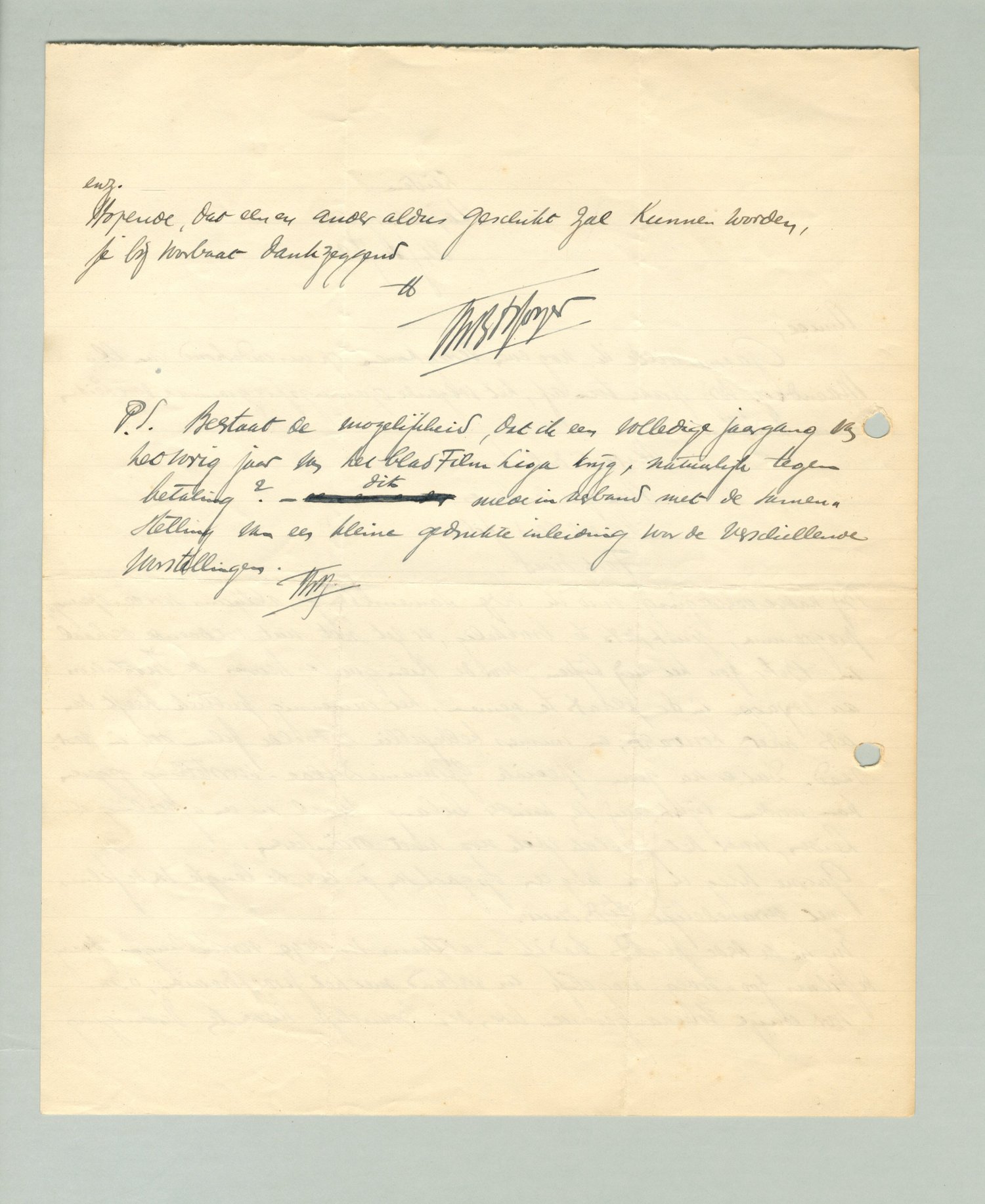 P.S. Bestaat de mogelijkheid, dat ik een volledige jaargang van het vorig jaar van het blad Film Liga krijg, natuurlijk tegen betaling? - dit mede in verband met de samenstelling van een kleine gedrukte inleiding voor de verschillende voorstellingen.