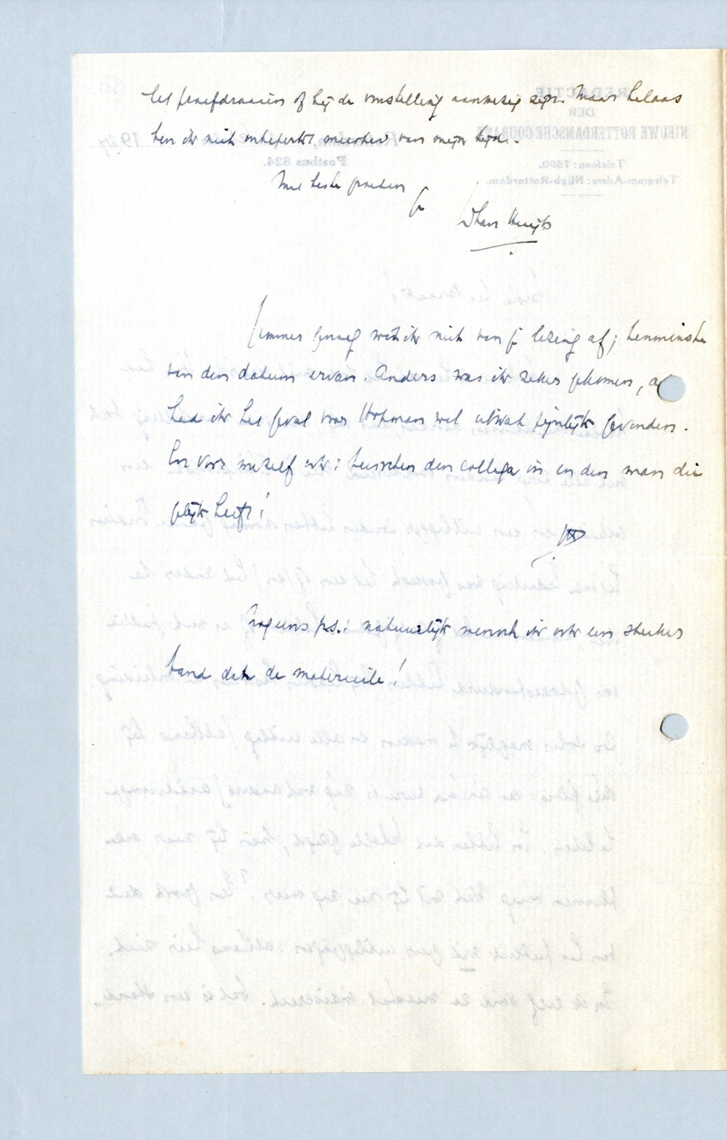 Nog eens p.s.: natuurlijk wensch ik ook een sterker band dan de materieele!