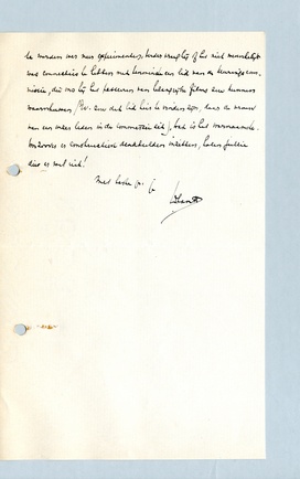 2o. de bezwaren van Oud. Hij moest erkennen ten aanzien van Emak-Bakia voorbarig te zijn geweest, in zijn veroordeelende oordeel. Verder heeft hij zijn wenschen nog eens geformuleerd en ter informatie geloof ik dat het goed is, ze ook voor jullie nog eens op te schrijven. Zijn voorkeur voor speelfilms is bekend: hij noemde Die Strasse, van Klopfer, Der müde Tod (maar wist niet meer van wien die was), Asta Nielsenfilms en verdere goede reprises (Variété, Ménilmontant, L'Inhumaine, Caligari: met al zijn wenschen daaromtrent ga ik niet geheel mee) verder: lachfilms, Amerikaansche, Prince, Max Linder. Aan Moholy Nagy zal hij zelf schrijven om ingelicht te worden over meer experimenten. Verder vroeg hij of het niet wenschelijk was connecties te hebben met tenminste een lid van de keuringscommissie, die ons bij het passeeren van belangrijke films zou kunnen waarschuwen.(Ev. zou dat lid hier te vinden zijn, daar de vrouw van een onze leden in de commissie zit). Dat is het voornaamste. Voor zoover er constructieve denkbeelden inzitten, halen jullie die er wel uit!