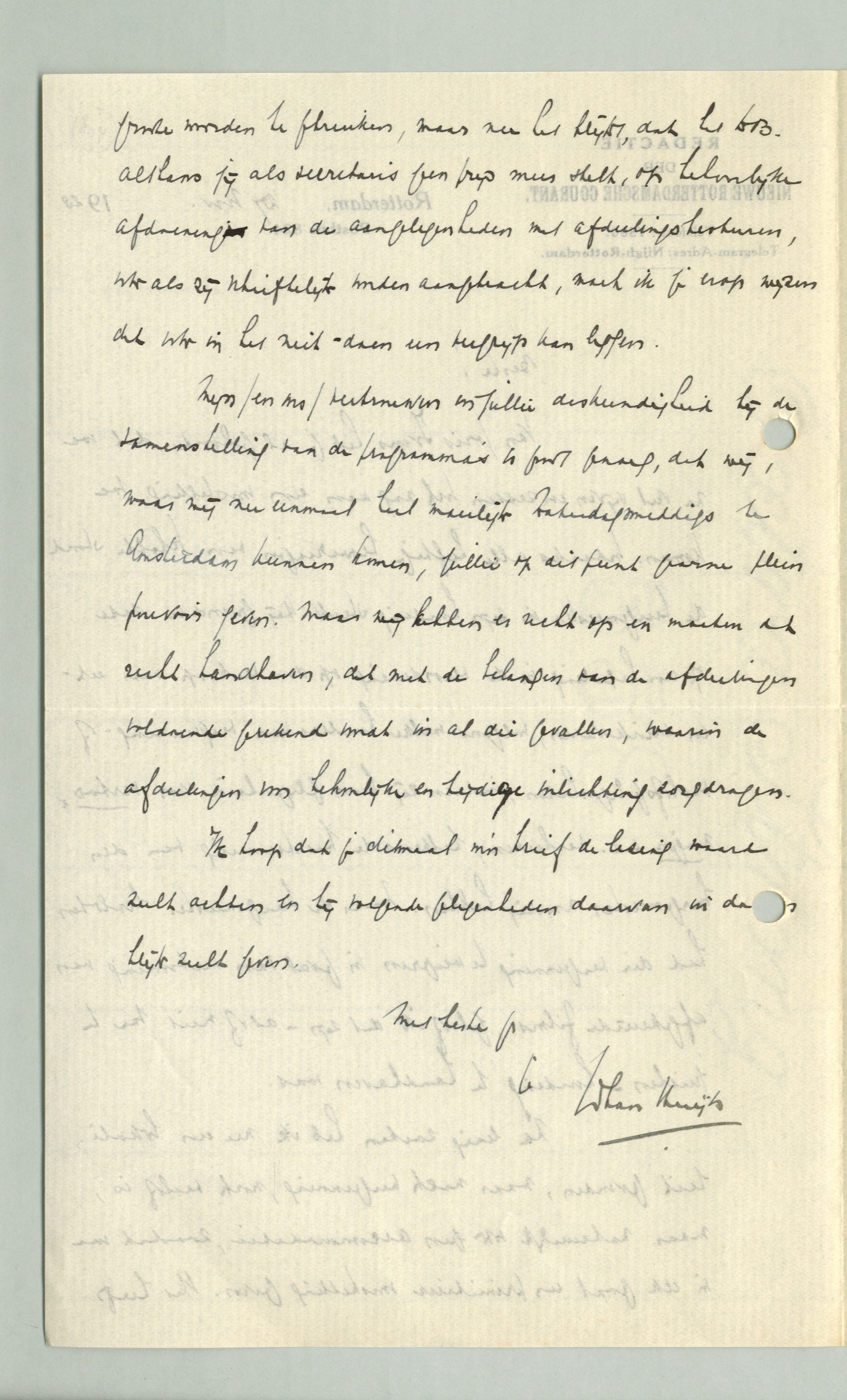Mijn (en ons) vertrouwen in jullie deskundigheid bij de samenstelling van de programma's is groot genoeg, dat wij, waar wij nu eenmaal heel moeilijk Zaterdagmiddags te Amsterdam kunnen komen, jullie op dit punt gaarne plein pouvoir geven. Maar wij hebben er recht op en moeten dat recht handhaven, dat met de belangen van de afdeelingen voldoende gerekend wordt in al die gevallen, waarin de afdeelingen voor behoorlijke en tijdige inlichting zorgdragen.