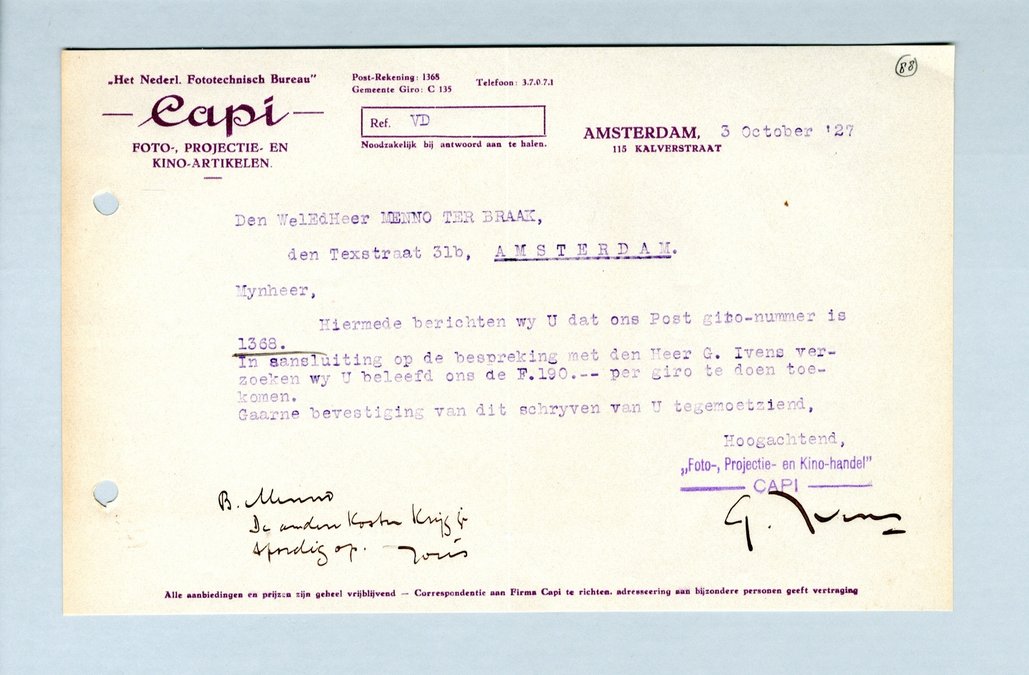 In aansluiting op de bespreking met den Heer G. Ivens verzoeken wij U beleefd ons de F.190.- per giro te doen toekomen.