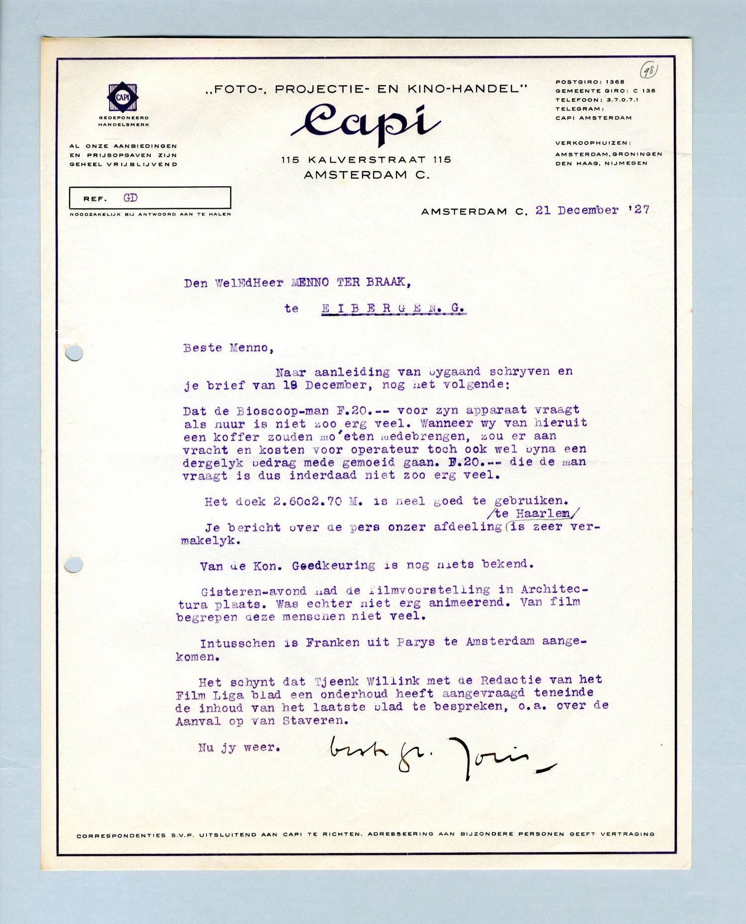 Het schijnt dat Tjeenk Willink met de Redactie van het Film Liga blad een onderhoud heeft aangevraagd teneinde de inhoud van het laatste blad te bespreken, o.a. over de Aanval op van Staveren.