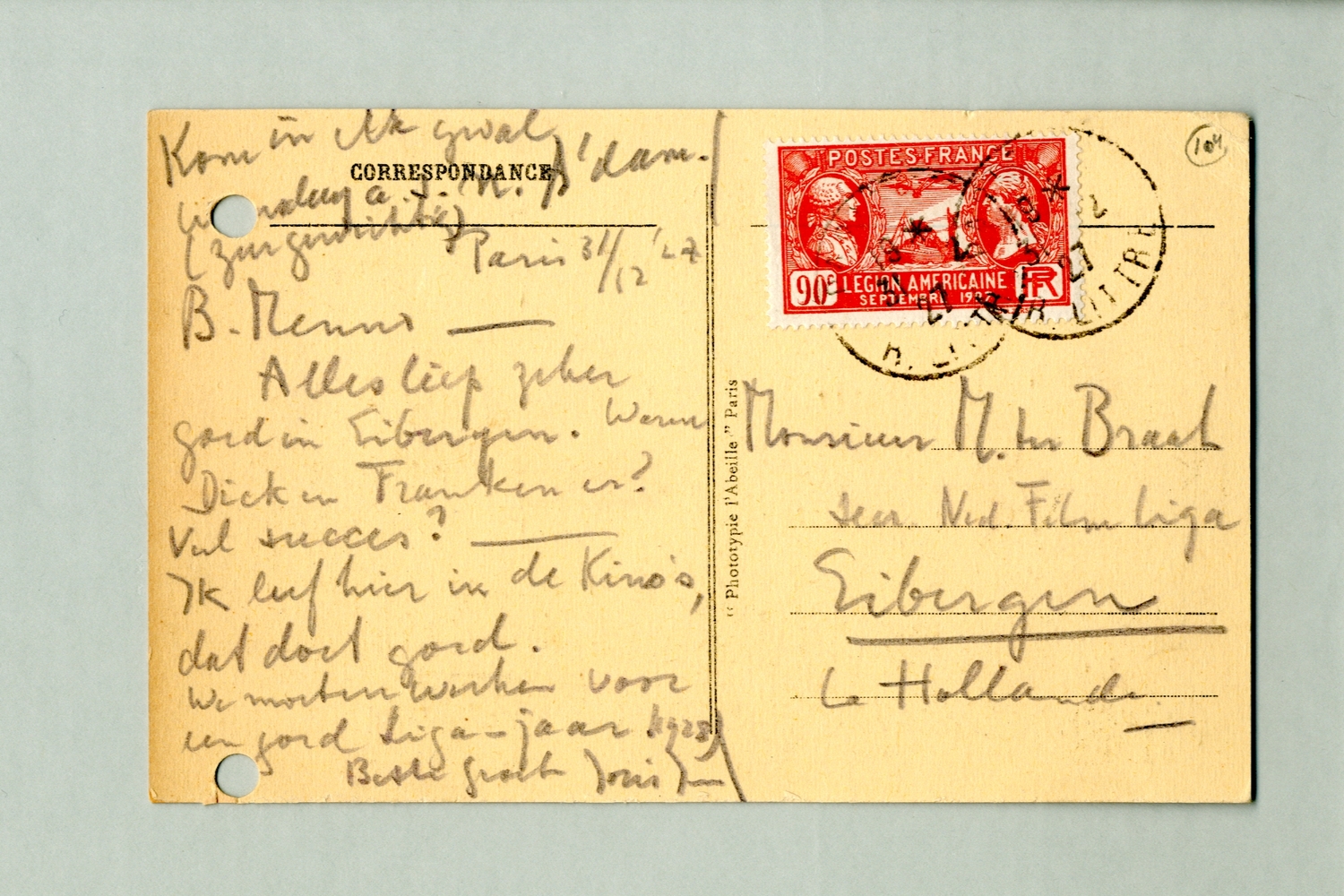 Ik leef hier in de Kino's, dat doet goed. We moeten werken voor een goed Liga-jaar (1928). Kom in elk geval woensdag a.s. n. A'dam (zeer gewichtig).