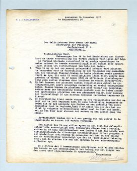 Ik vertrouw dat U bovenstaande opmerkingen zult willen beschouwen zooals ze zijn bedoeld, nam. in het belang van het slagen van den opzet uwer liga, waarmede ik sympathiseer.