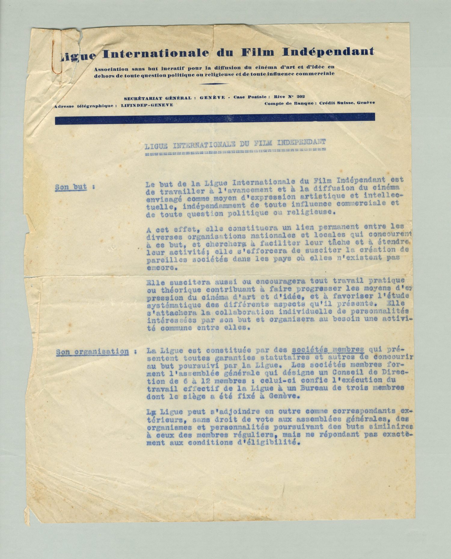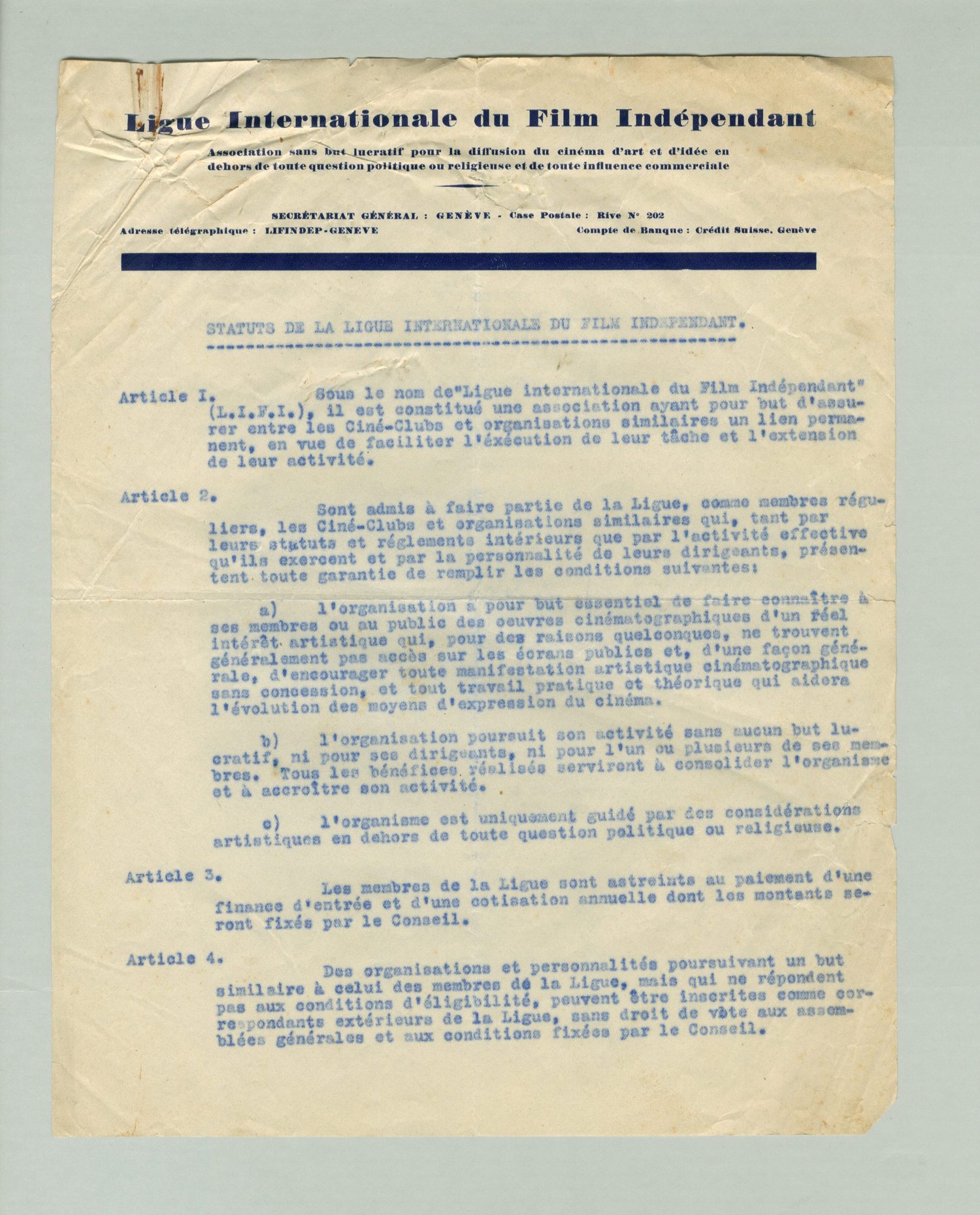 Statuts de la Ligue Internationale du Film Indépendant