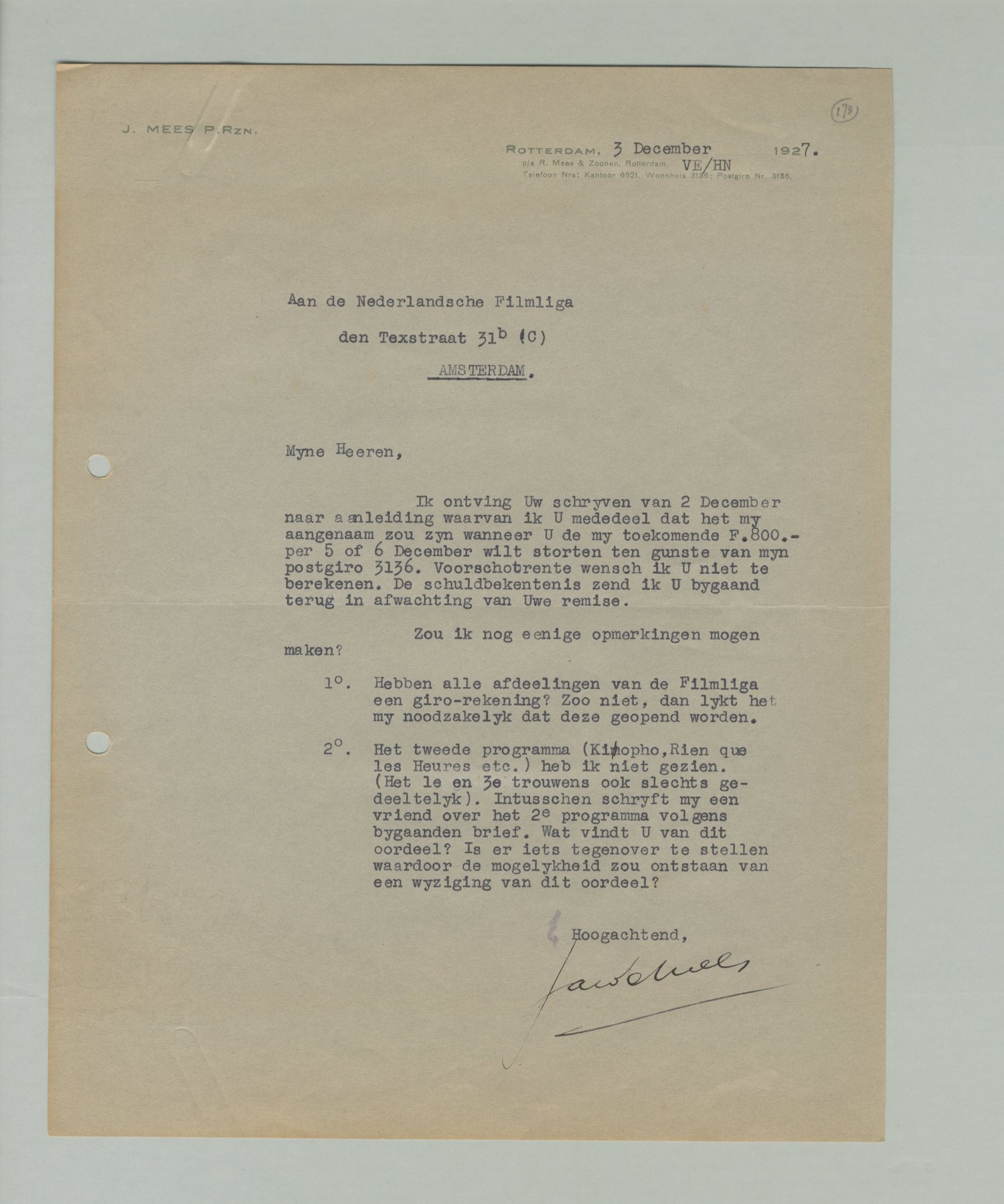 | 1o. | Hebben alle afdeelingen van de Filmliga een giro rekening? Zoo niet, dan lijkt het mij noodzakelijk dat deze geopend worden. |