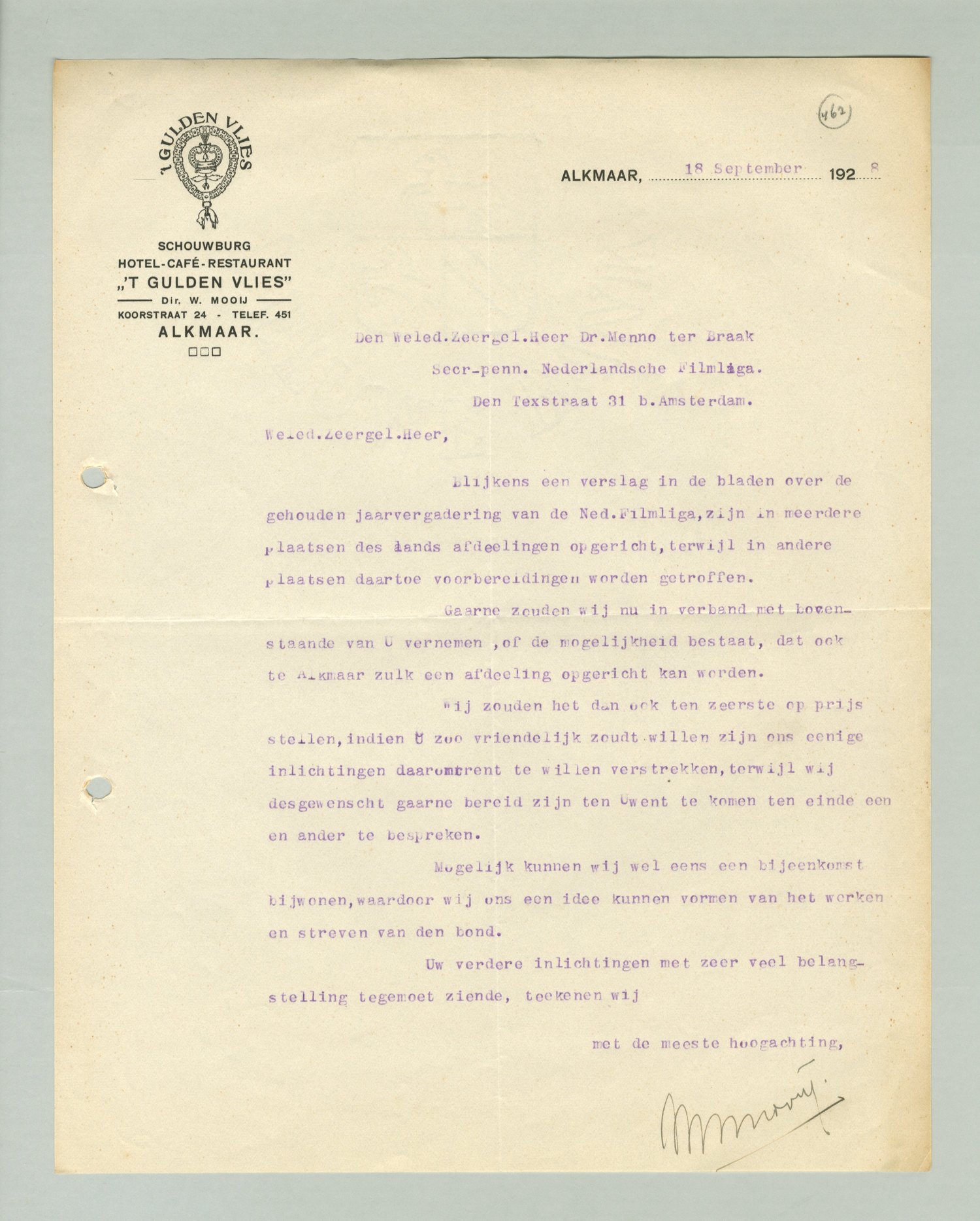Gaarne zouden wij nu in verband met bovenstaande van U vernemen, of de mogelijkheid bestaat, dat ook te Alkmaar zulk een afdeeling opgericht kan worden.