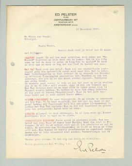Man Ray. Dank voor den brief. Dankzij ons onpractische postpapier ging die natuurlijk eerst weer naar jou. Dat is allemaal tijdsbesparing en komt doordat ik op verzoek van Franken op officieel Liga-papier geschreven heb. Franken is ook een zakenman, die zoo nu en dan moet worden opgezet. Overigens een prima kerel.