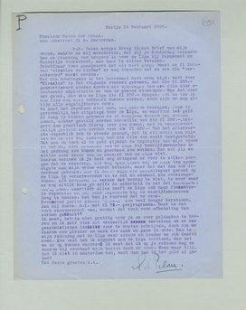 Daarom verzoek ik je heel erg dringend er voor te willen zorgen dat de rekening, die nog open staat bij de Liga ten spoedigste aan mijn vrouw wordt betaald, maar dat dat dan ook inderdaad gebeurt. Die fl 300.- zijn als garantiepost gerust op de Liga te verantwoorden en is dat nu eenmaal zoo overeengekomen. Zóó moordend is verder dat bedrag niet, te meer waar er nog altijd kans en zelfs de zekerheid is dat het binnenkort terug komt. Maar voor alles heeft de Liga ook haar finantieele reputatie en ook onze reputatie bij de bedrijfsmenschen hoog te houden. Dat ben je roerend met me eens.