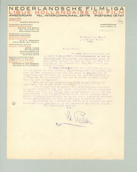 Wat betreft het programma voor Zaterdag a.s., hierover is op dit oogenblik nog geen enkel definitief nieuws, aangezien de films nog niet uit Parijs zijn aangekomen, en wij er ook nog geen bericht over krijgen. Franken heeft echter gisteren weer erover getelegrafeerd, zoodat we nu wel ieder oogenblik antwoord kunnen hebben. Zoodra er iets nieuws over is, hoor je het.
