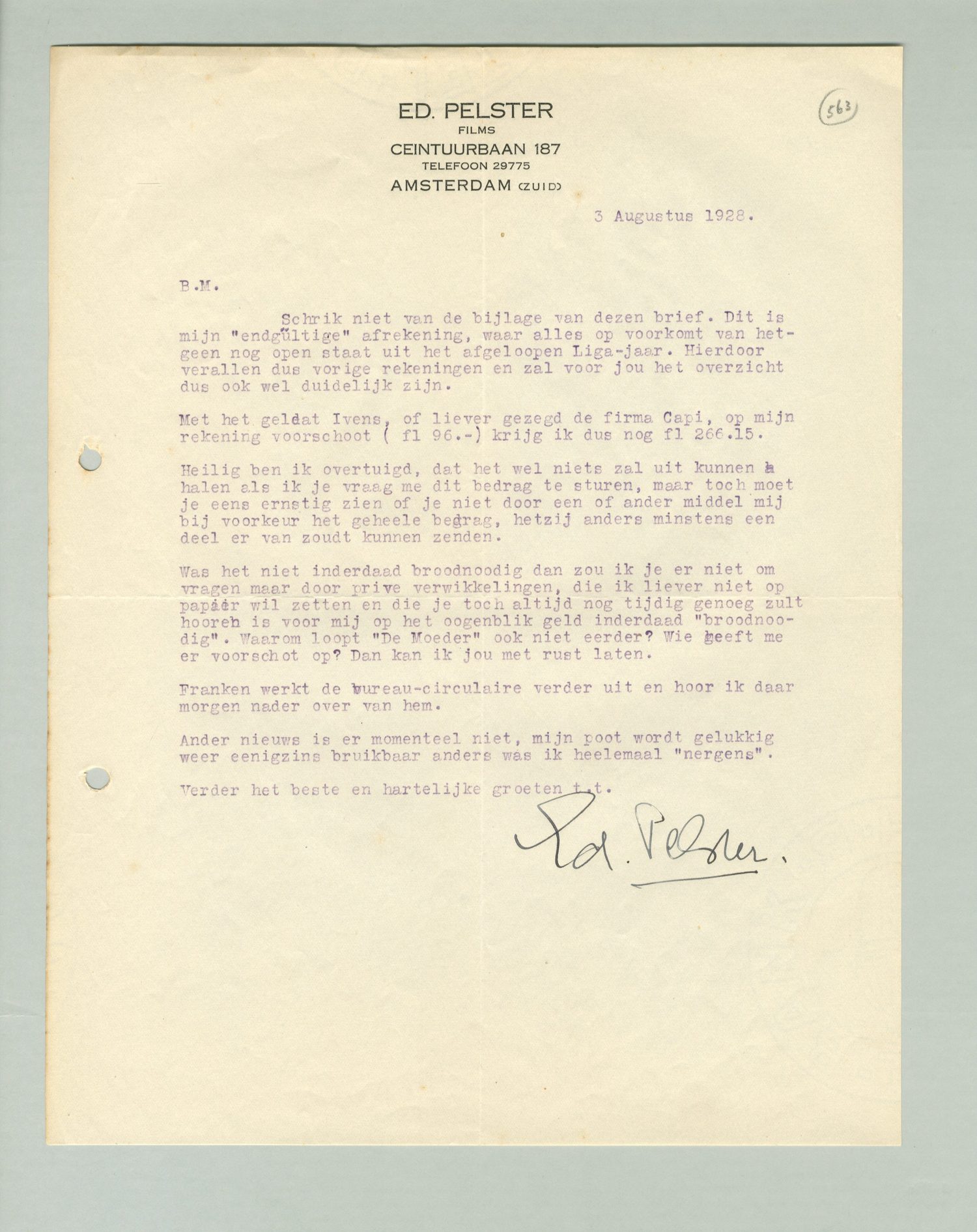 Was het niet inderdaad broodnoodig dan zou ik je er niet om vragen maar door prive verwikkelingen, die ik liever niet op papier wil zetten en die je toch altijd nog tijdig genoeg zult hooren is voor mij op het oogenblik geld inderdaad ‘broodnoodig’. Waarom loopt De Moeder ook niet eerder? Wie geeft me er voorschot op? Dan kan ik jou met rust laten.