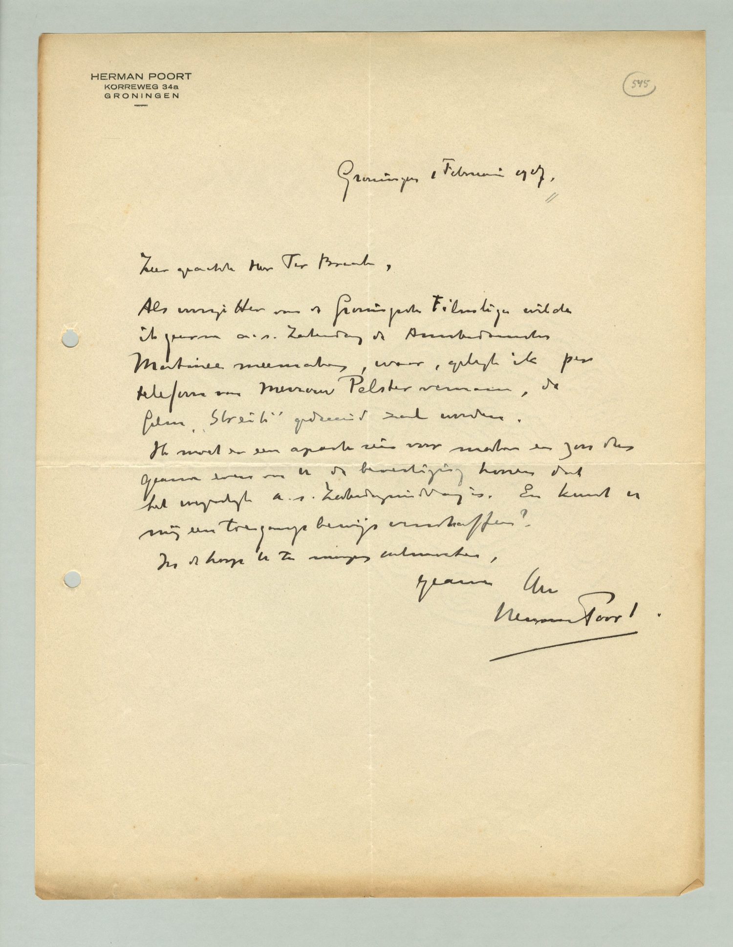 Als voorzitter van de Groningsche Filmliga wilde ik gaarne a.s. Zaterdag de Amsterdamsche Matinee meemaken, waar, gelijk ik per telefoon van Mevrouw Pelster vernam, de film Streik gedraaid zal worden.